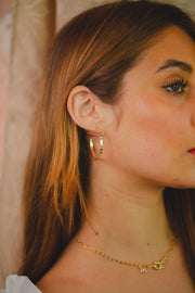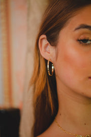 BRINCO ARGOLA COM DETALHES TEXTURIZADOS FOLHEADO A OURO 18K