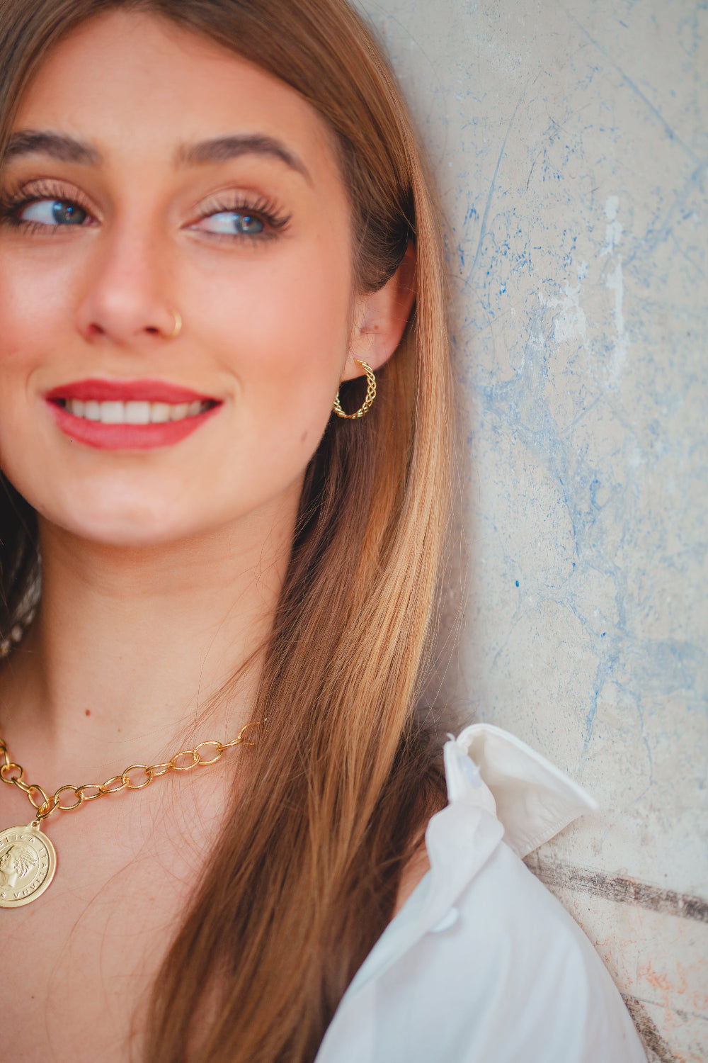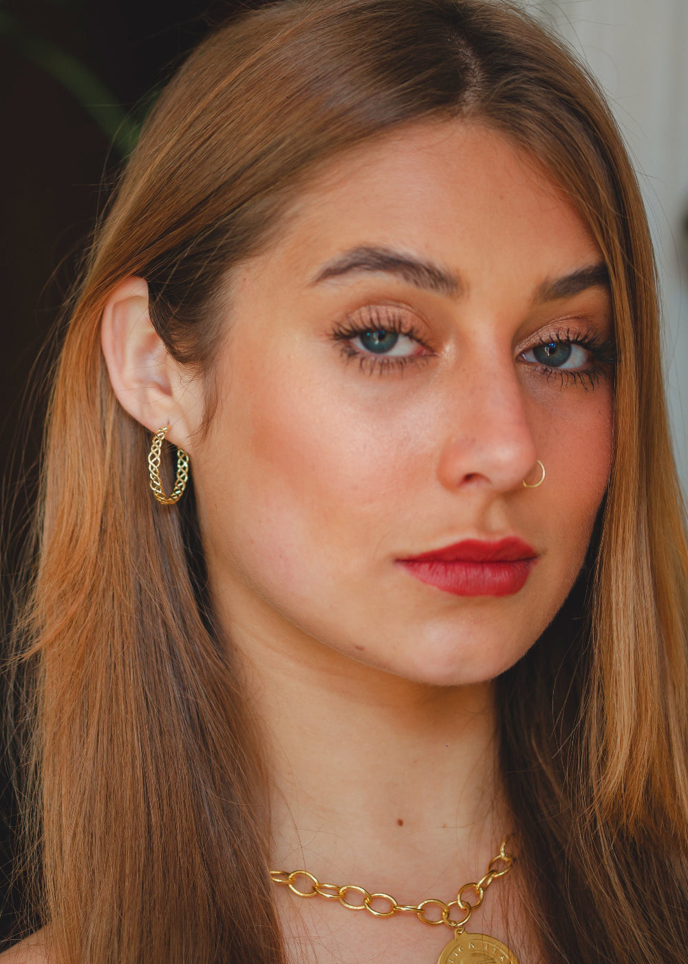 Com um acabamento luxuoso e elegante, esses brincos oferecem a aparência do ouro verdadeiro, trazendo um toque de glamour a qualquer look. A camada de folheado confere durabilidade, tornando-os ideais para o uso diário ou para ocasiões especiais.