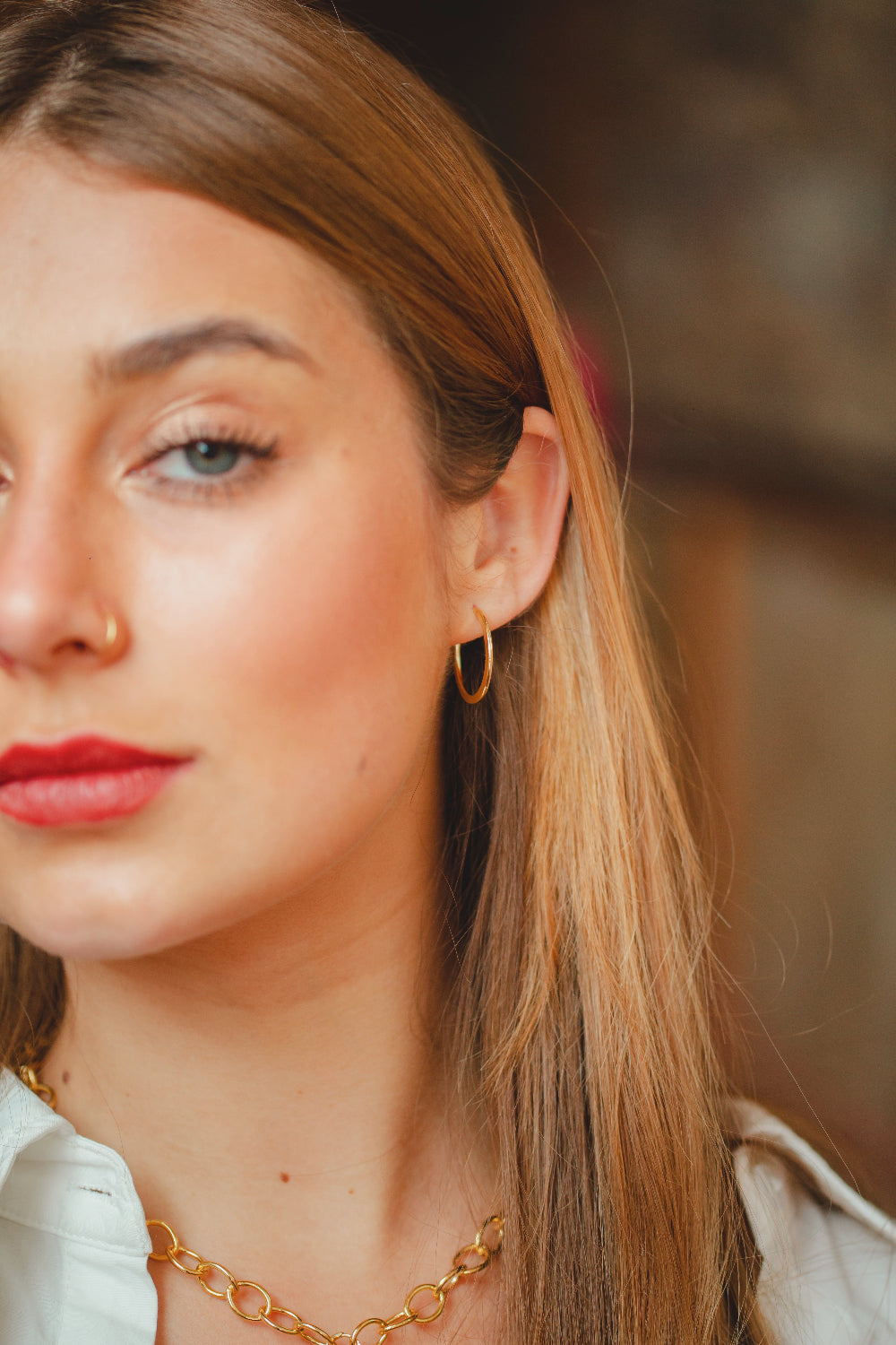 Com um acabamento luxuoso e elegante, esses brincos oferecem a aparência do ouro verdadeiro, trazendo um toque de glamour a qualquer look. A camada de folheado confere durabilidade, tornando-os ideais para o uso diário ou para ocasiões especiais.