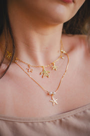 COLAR COM PÉROLAS E ESTRELA DO MAR 45CM FOLHEADO A OURO 18K
