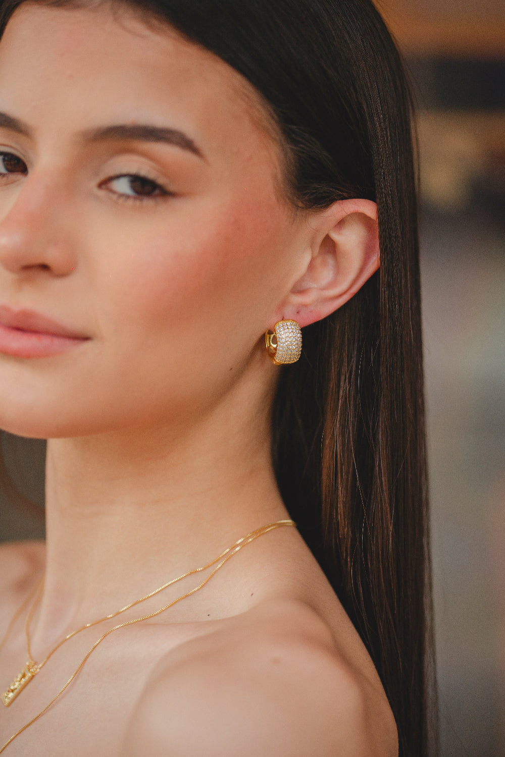 BRINCO ARGOLA REPLETA EM ZIRCÔNIAS G FOLHEADO A OURO 18K