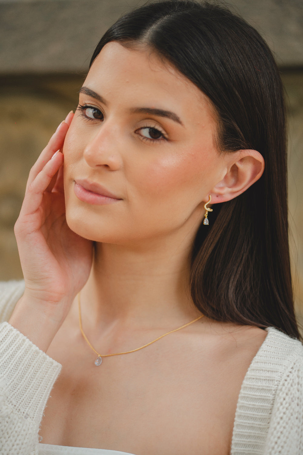 BRINCO CRAVEJADO COM PINGENTE DE ZIRCÔNIA FOLHEADO A OURO 18K