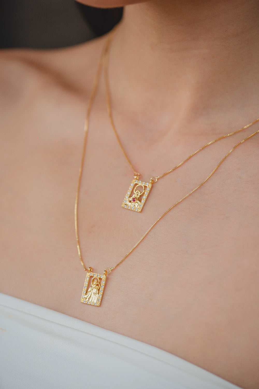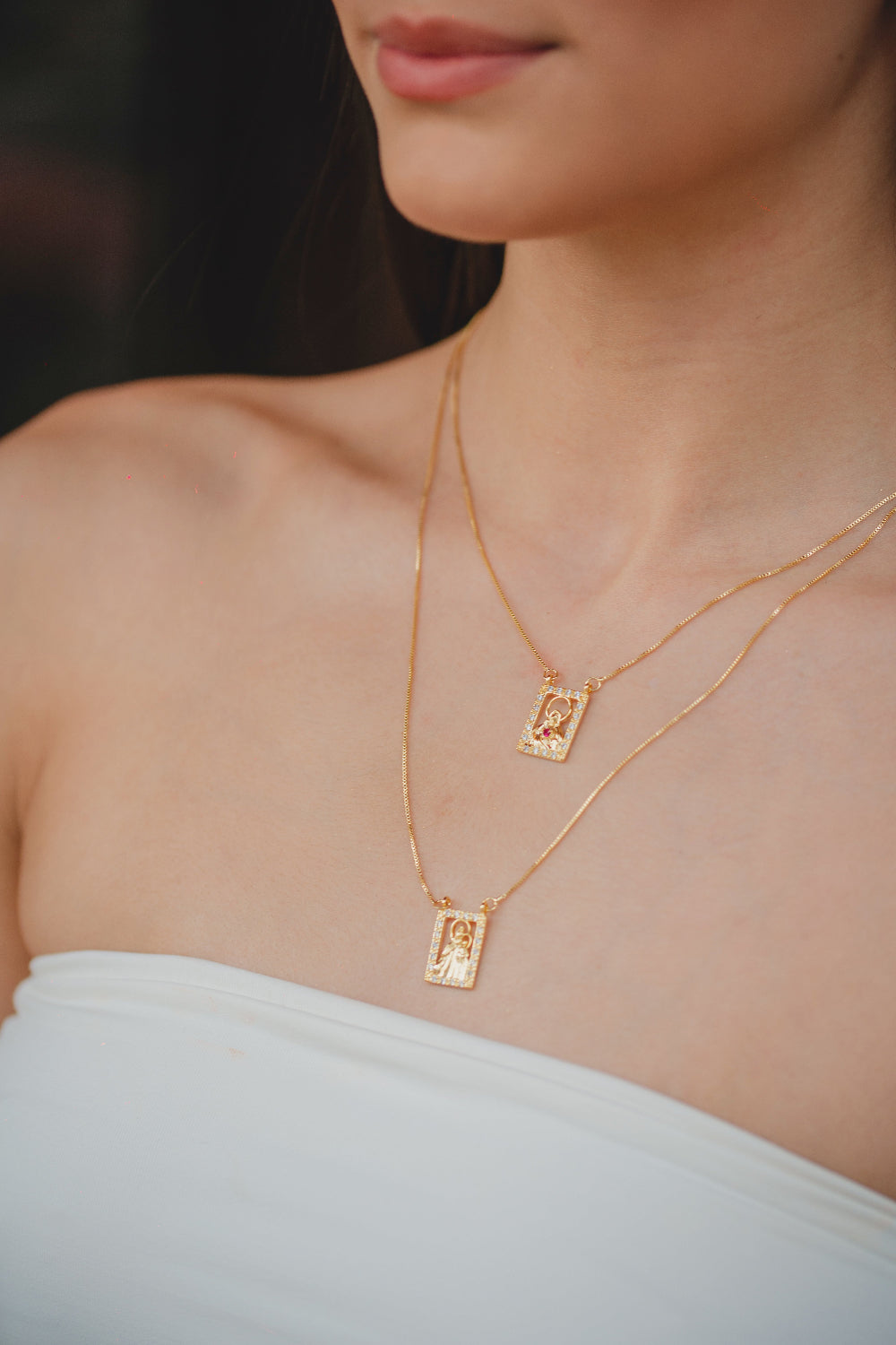 ESCAPULÁRIO DUPLO SAGRADO CORAÇÃO DE JESUS FOLHEADO A OURO 18K