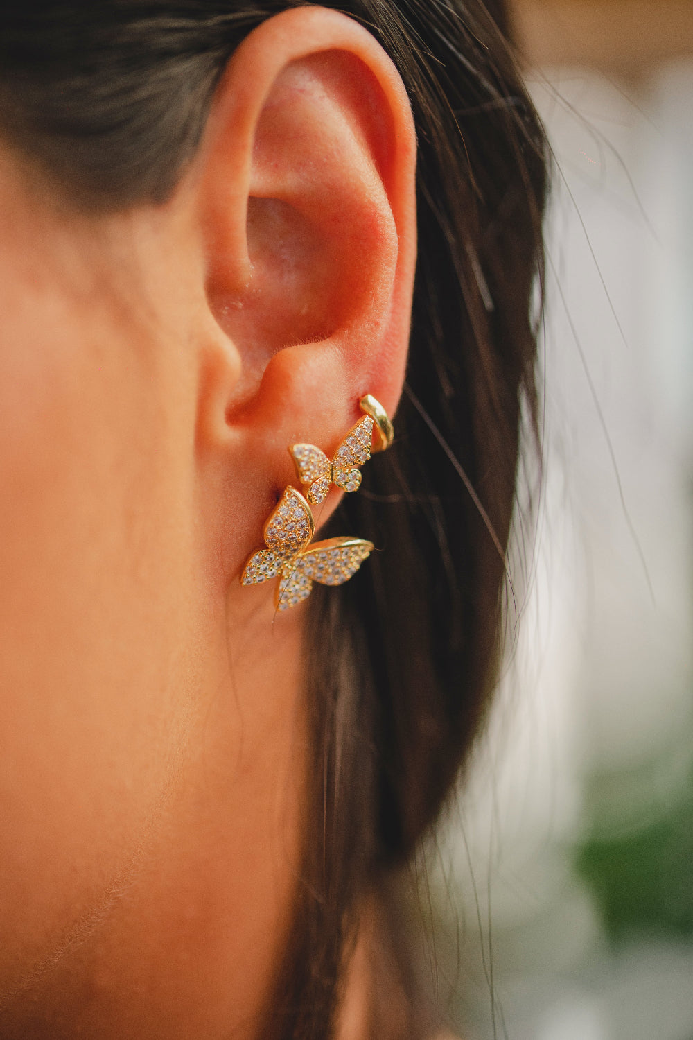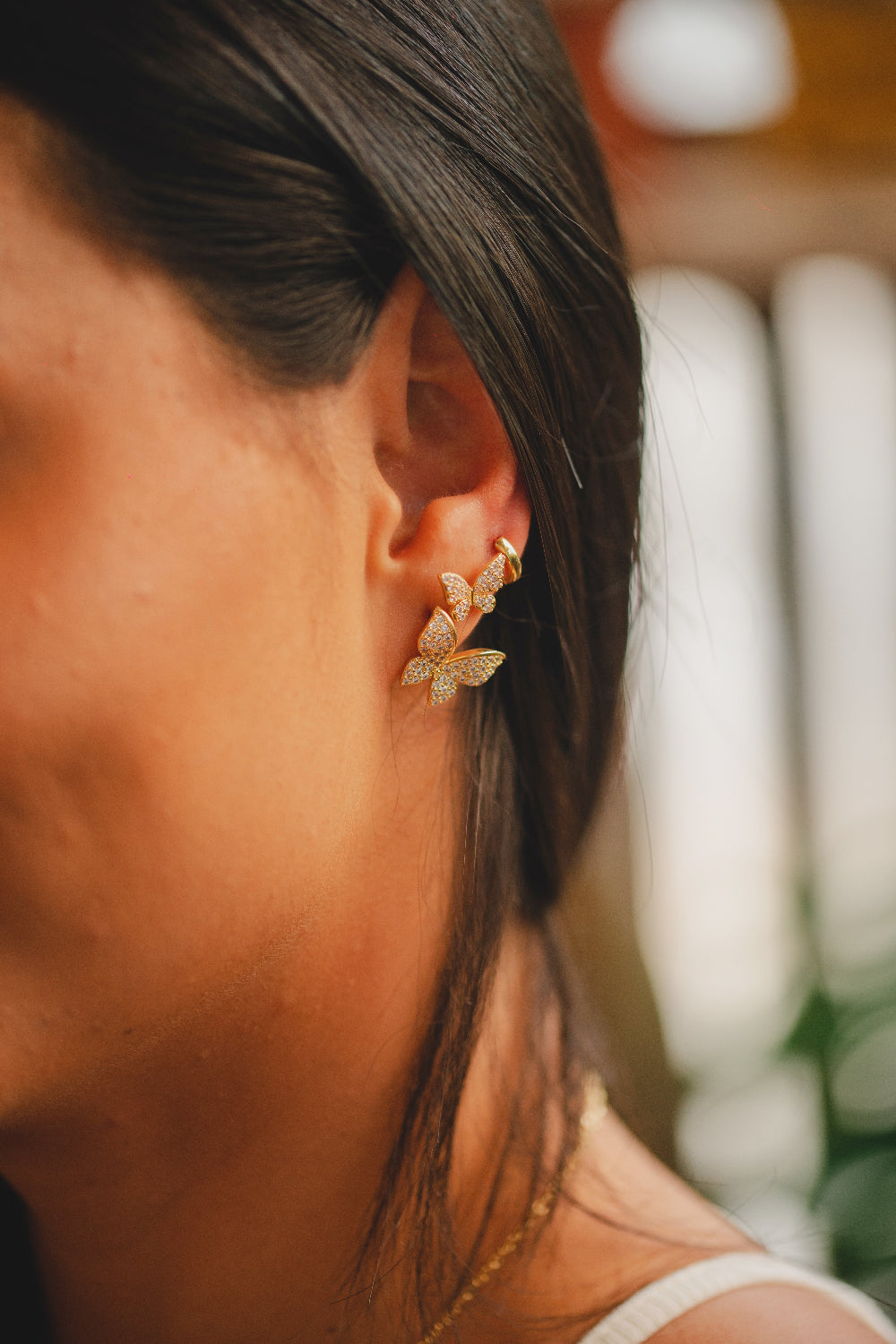 BRINCO BORBOLETA GRANDE CRAVEJADO FOLHEADO A OURO 18K