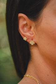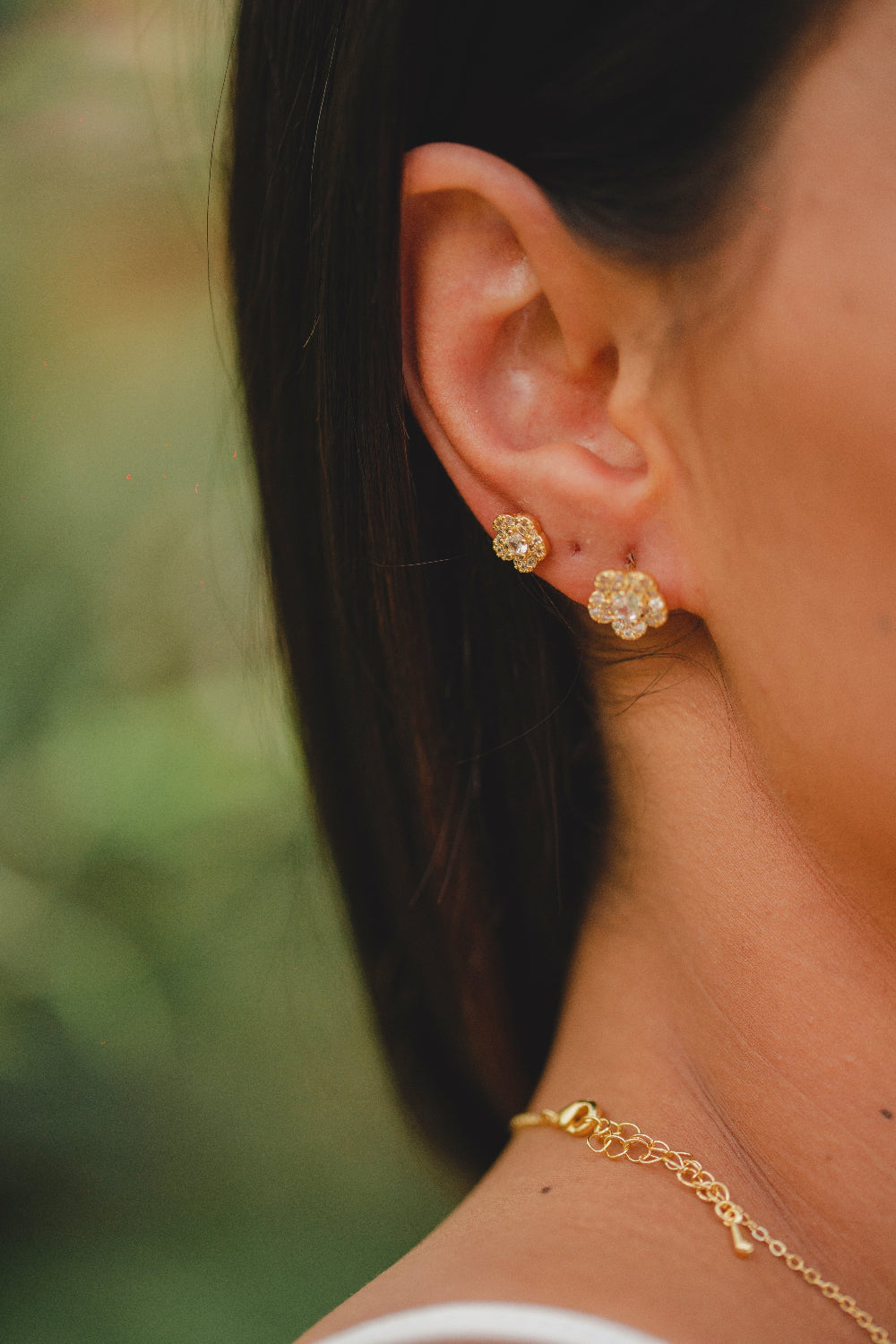 BRINCO FLOR PEQUENA COM ZIRCÔNIAS FOLHEADO A OURO 18K