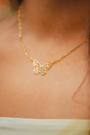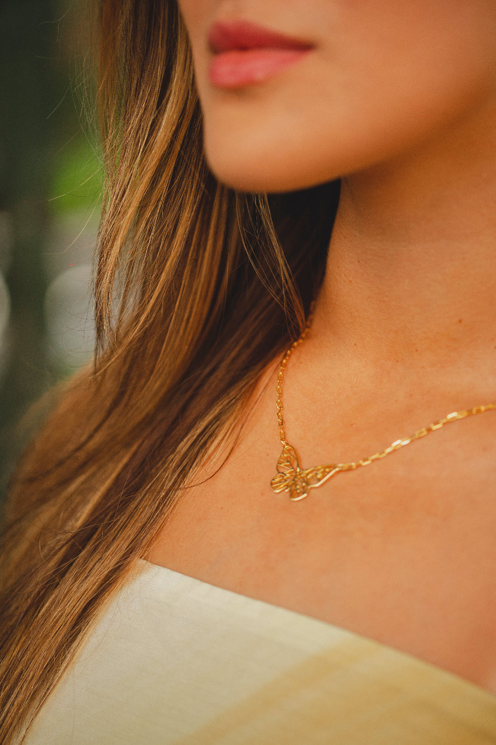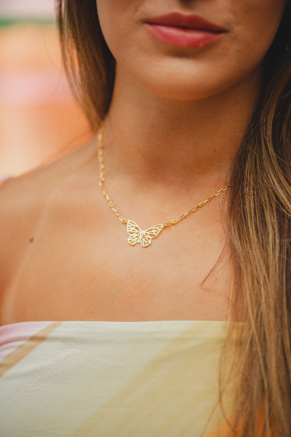 COLAR DE ELOS COM BORBOLETA LISA FOLHEADO A OURO 18K