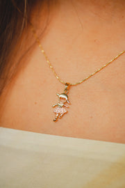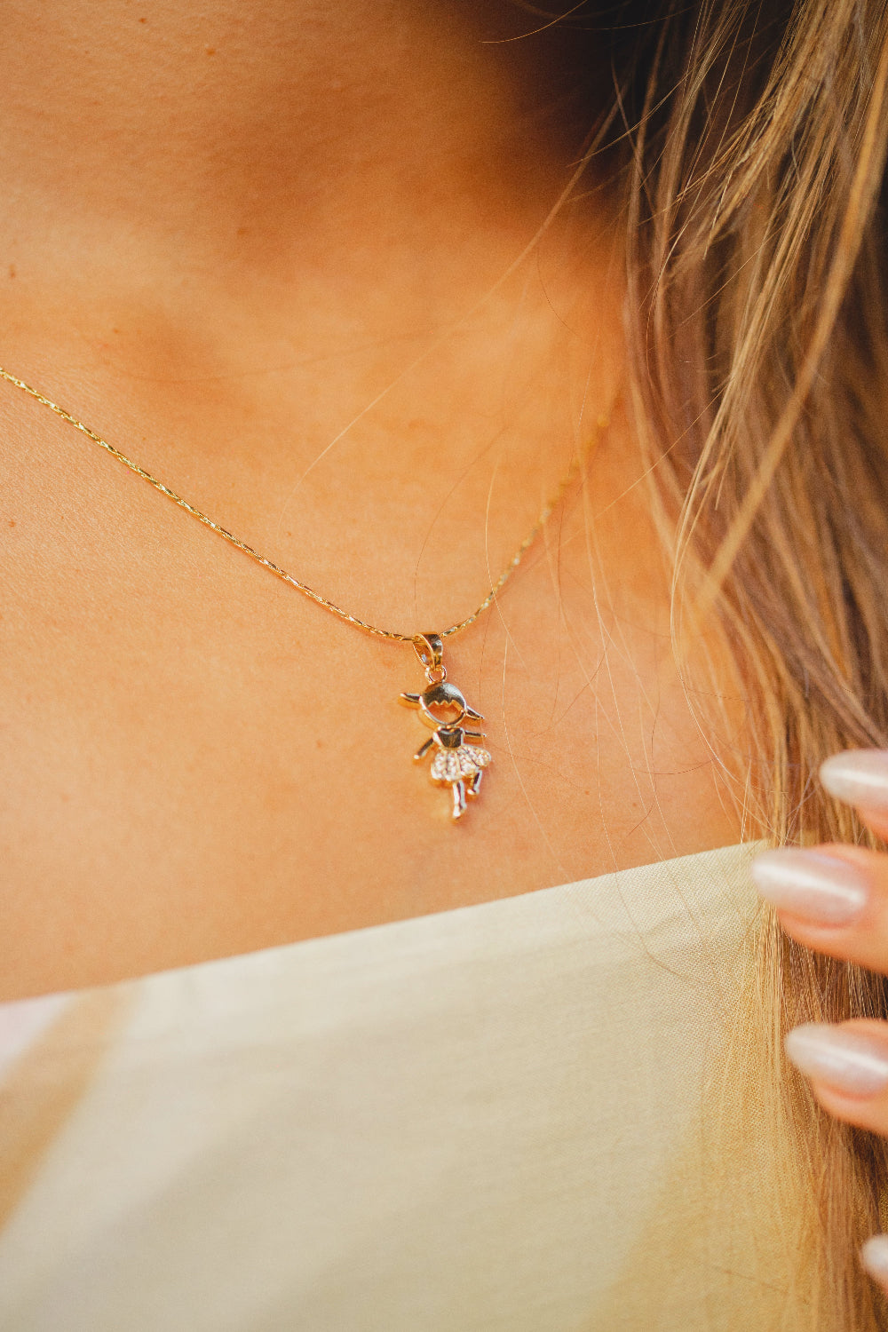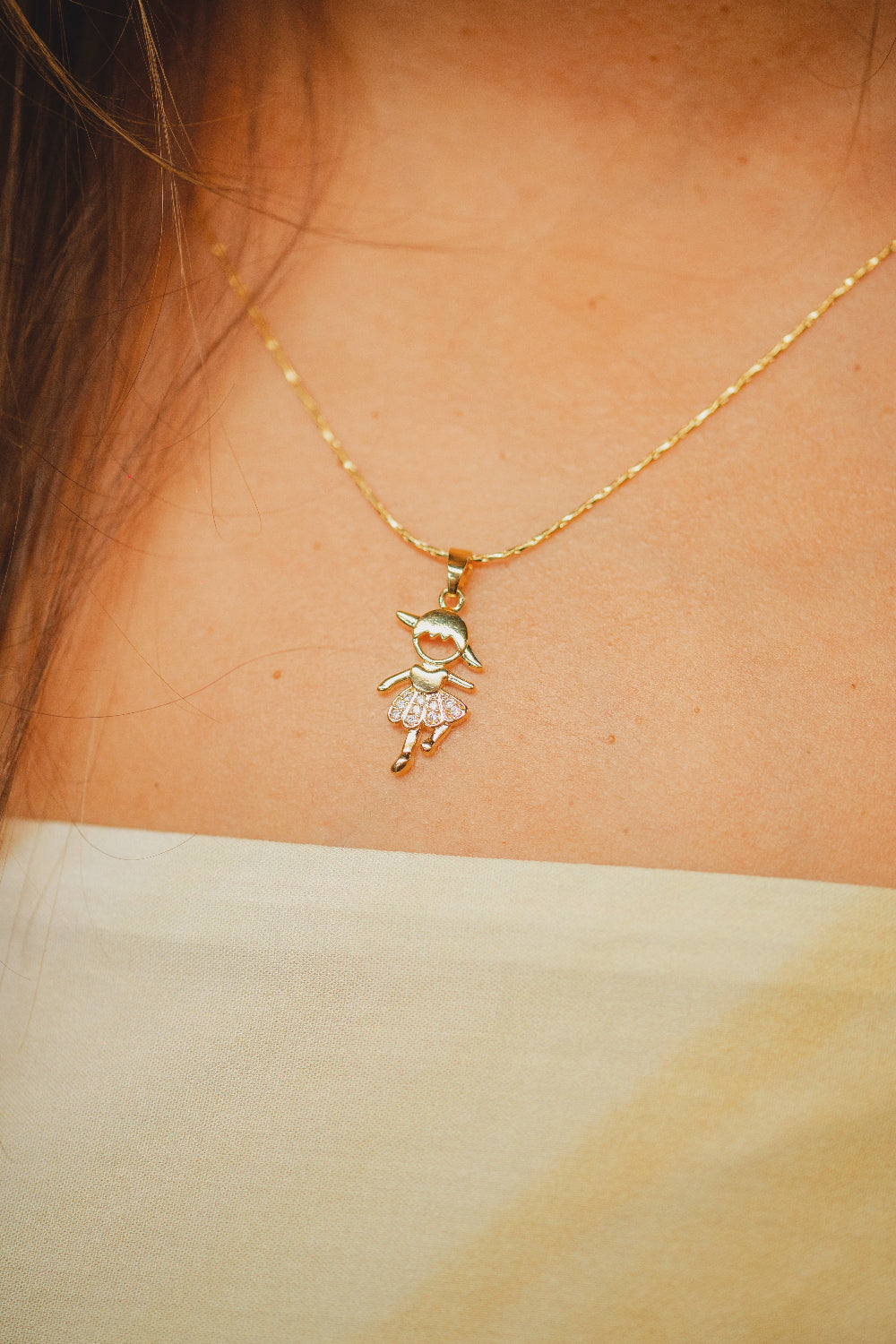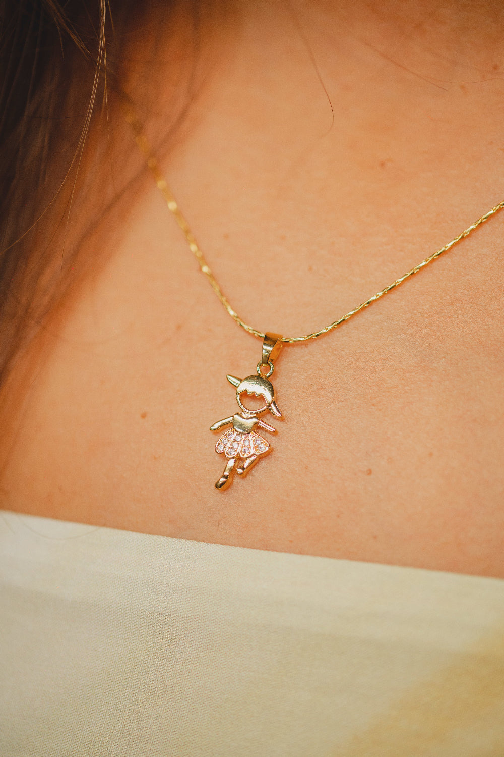 COLAR RÍGIDO COM PINGENTE DE MENINA CRAVEJADO FOLHEADO A OURO 18K