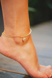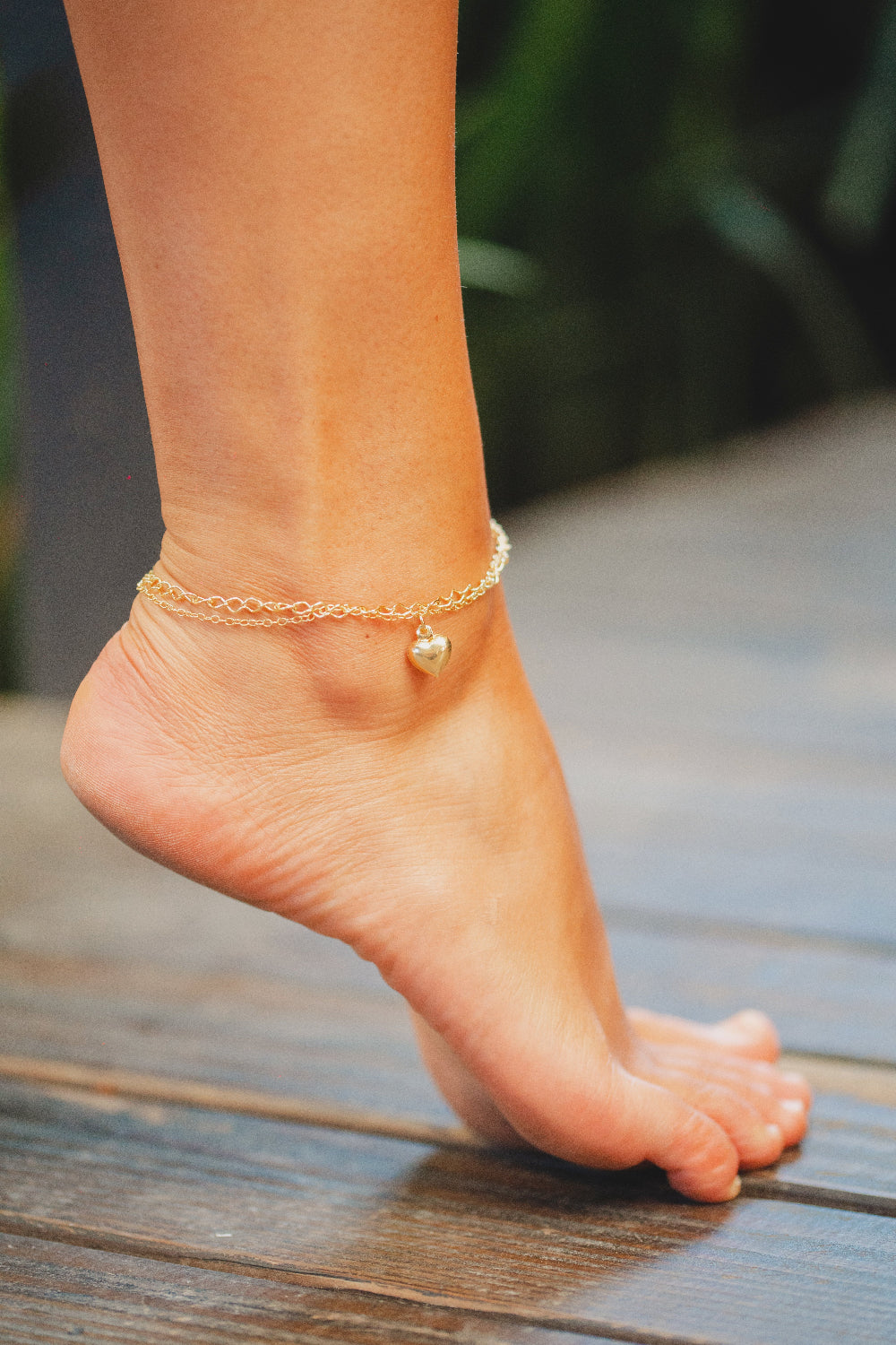 TORNOZELEIRA DE ELOS COM PINGENTE DE CORAÇÃO LISO FOLHEADO A OURO 18K