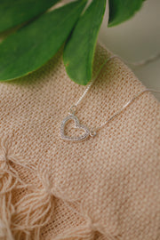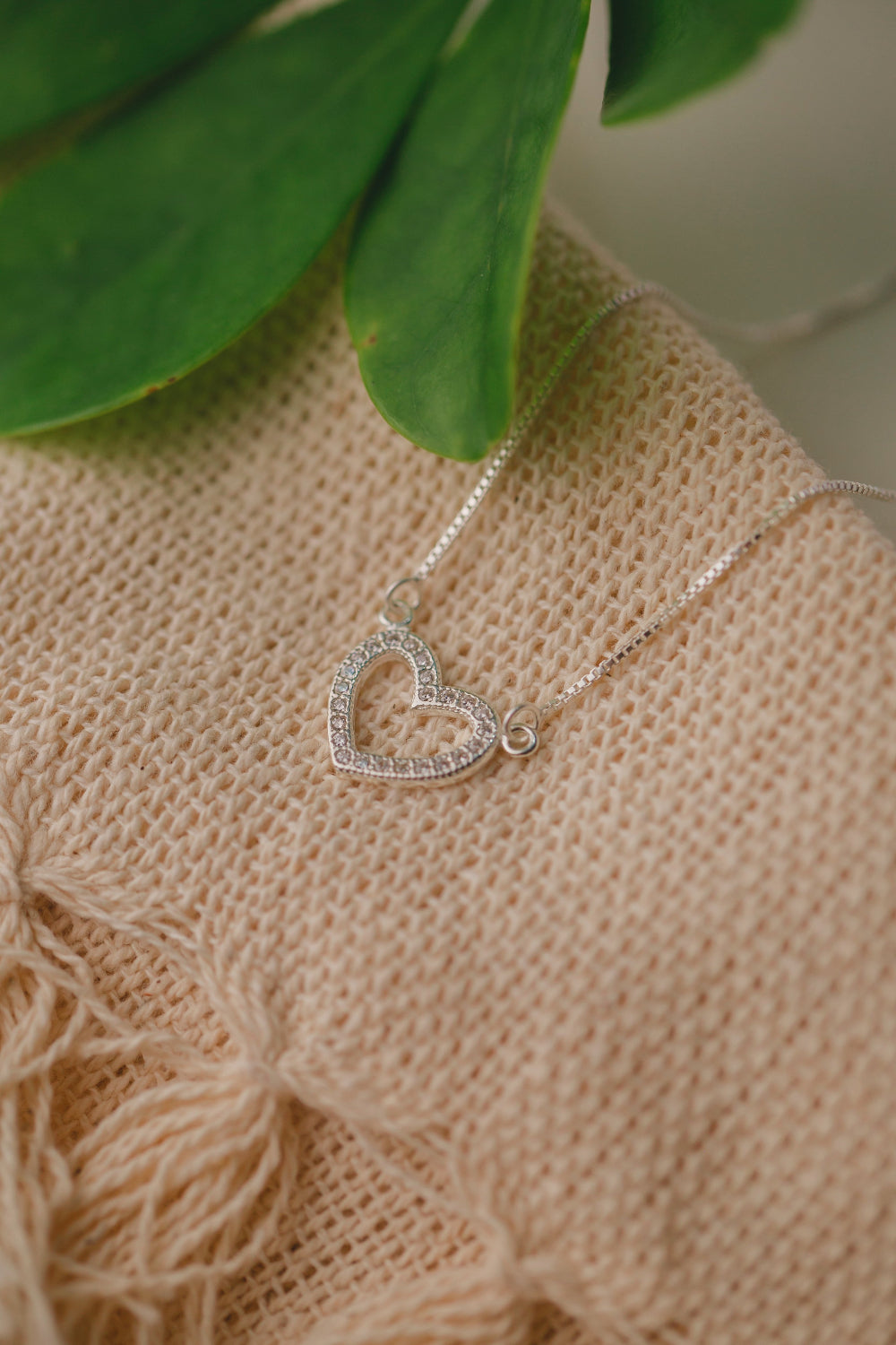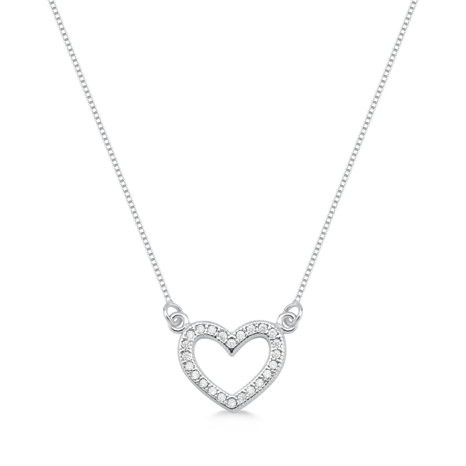 COLAR DE PRATA COM PINGENTE DE CORAÇÃO CRAVEJADO DE ZIRCONIAS