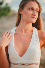COLAR OLHO COM PEDRA VERDE FOLHEADO A OURO 18K