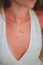 COLAR PEDRA ROSA E LAGRIMA COM ZIRCONIA FOLHEADO A OURO 18K
