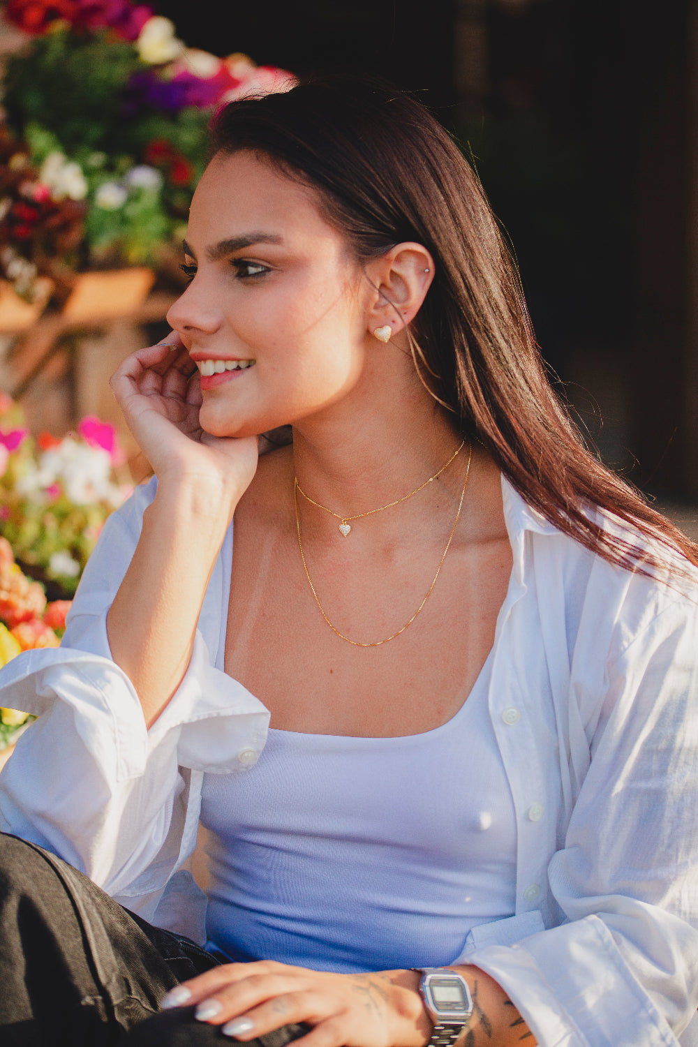 Clássico e atemporal, é aquele tipo de brinco que combina com todos os momentos. Seu brilho discreto ilumina o rosto de forma delicada, enquanto o banho de ouro garante durabilidade e sofisticação. Ideal para quem ama estar bem vestida em qualquer situação.