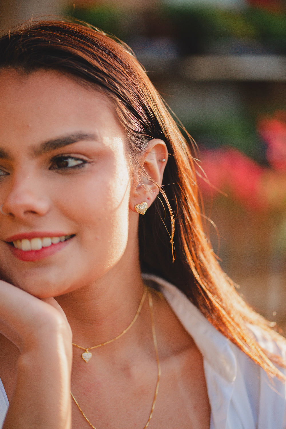 BRINCO CORAÇÃO CRAVEJADO FOLHEADO A OURO 18K