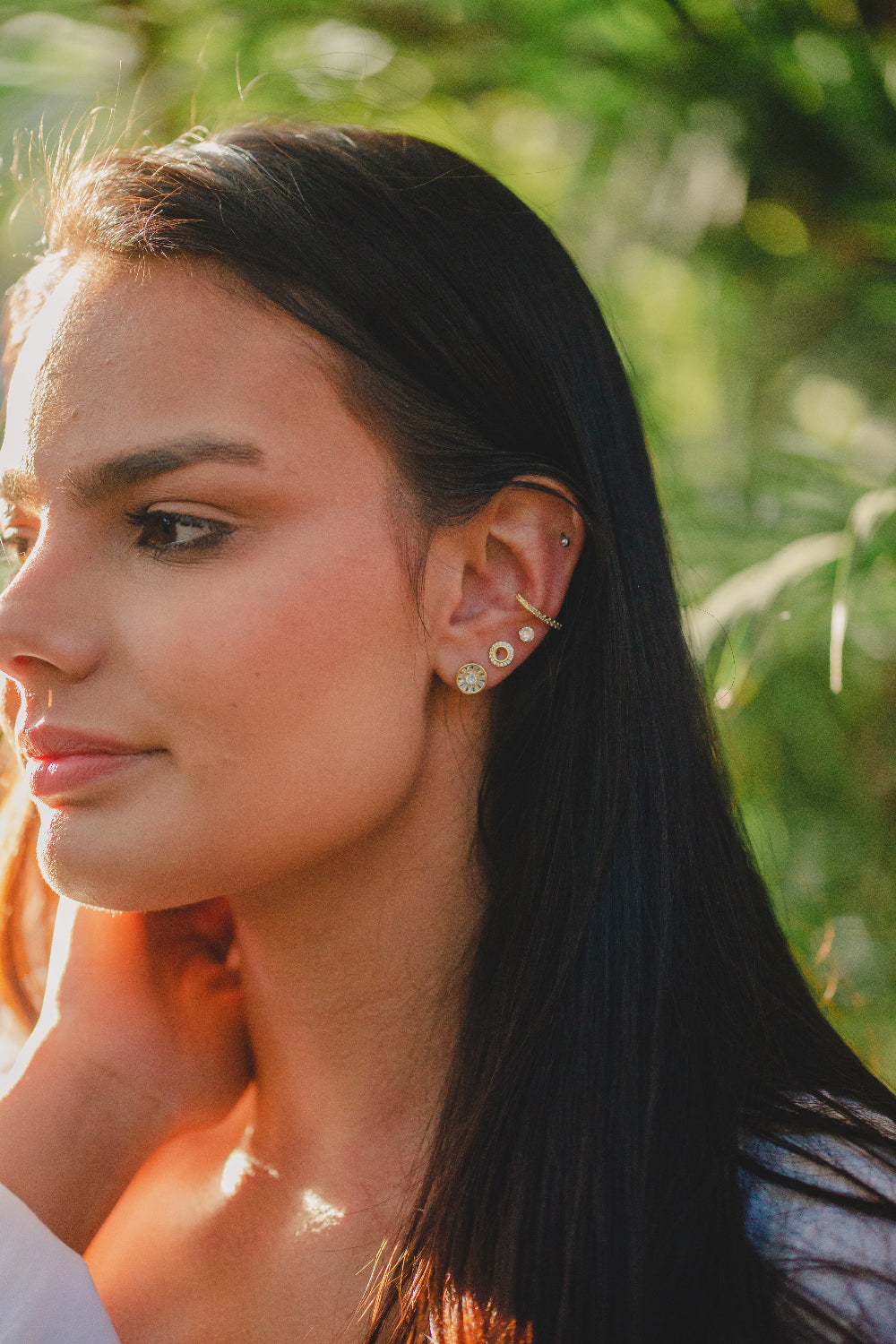 Se você procura um acessório versátil e elegante, este é o brinco certo. Seu banho de ouro 18k proporciona um brilho duradouro, enquanto o design sofisticado garante combinações perfeitas com outros acessórios.