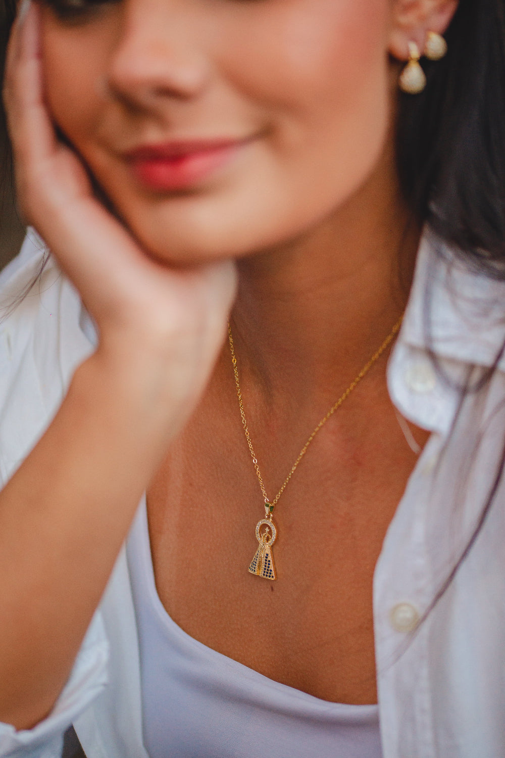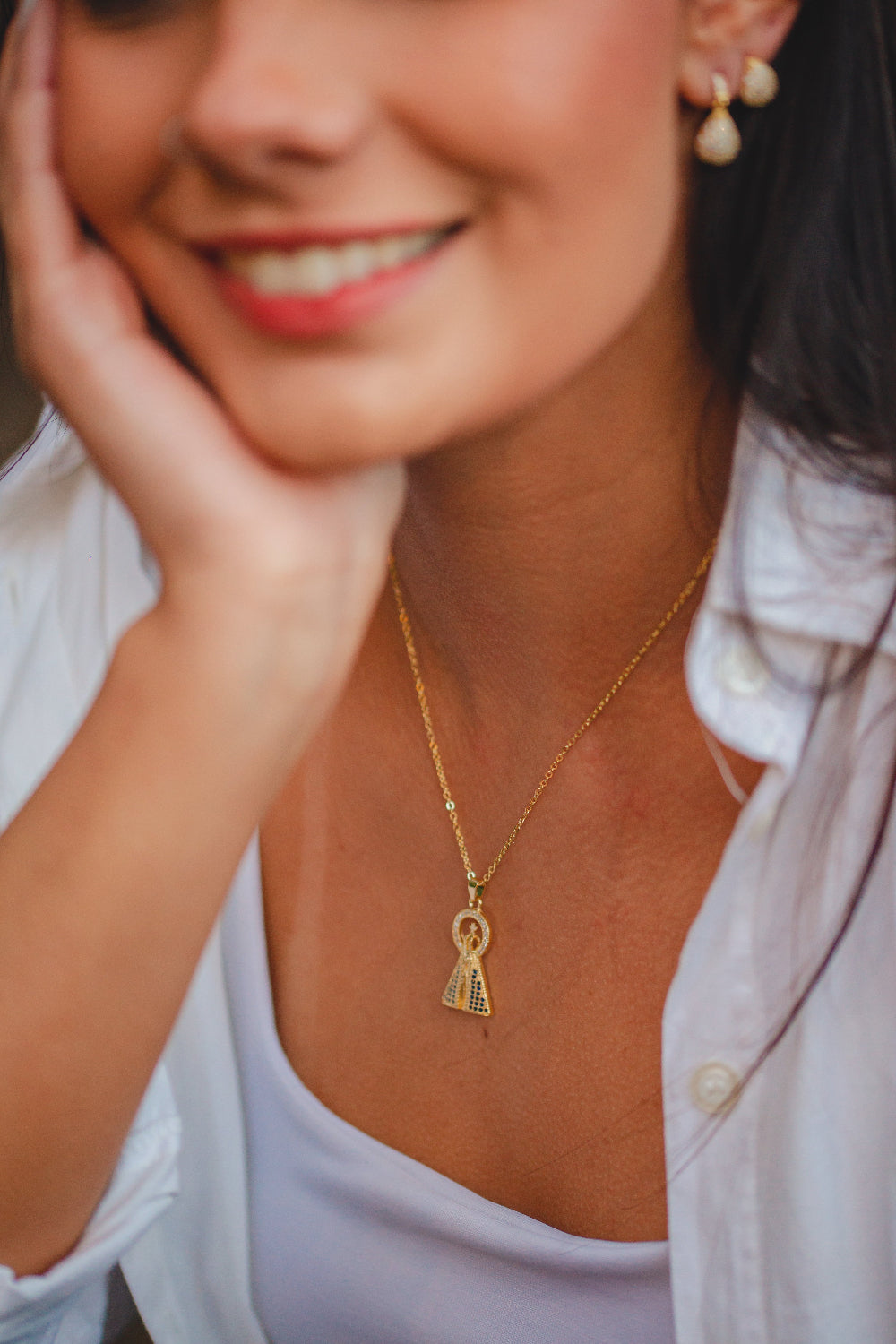 COLAR NOSSA SENHORA CRAVEJADO FOLHEADO A OURO 18K
