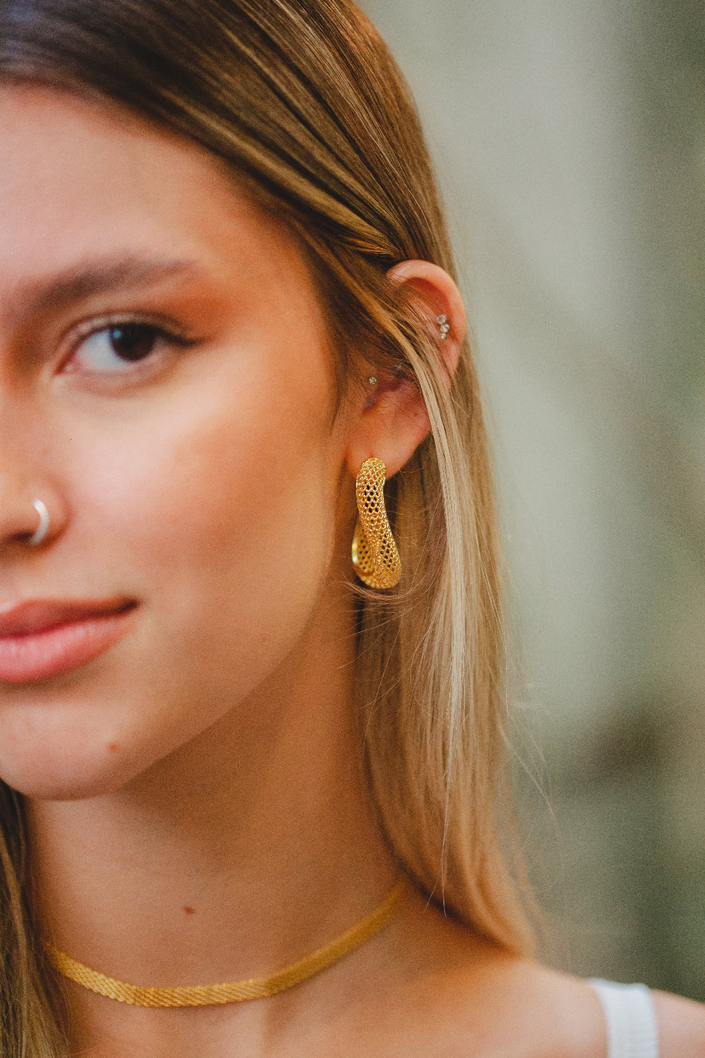 Com um acabamento luxuoso e elegante, esses brincos oferecem a aparência do ouro verdadeiro, trazendo um toque de glamour a qualquer look. A camada de folheado confere durabilidade, tornando-os ideais para o uso diário ou para ocasiões especiais.