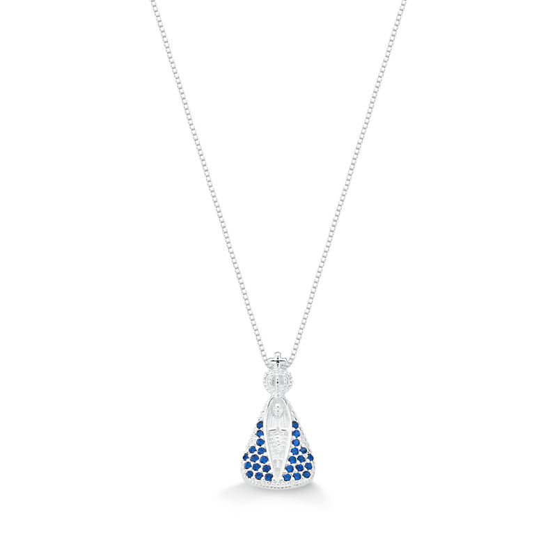 Modelinho extremamente importante para tornar seu look ainda mais lindo e encantador. Ideal para você que ama joias religiosas para ficar ainda mais linda e com a fé em dia! Pingente de prata Nossa Senhora Aparecida com zircônias azuis é fantástico! Visite nosso site e combine com uma belíssima corrente para deixar seu look ainda mais maravilhoso!