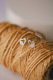 BRINCO DE PRATA MINI CORAÇÃO E FLOR
