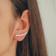 Uma joia com design moderno e irreverente, que promete agregar uma personalidade única aos seus looks! Traz consigo um olhar de magnífico em suas composições assim como em seu visual. Brinco de prata ear cuff cravejado de zircônias é encantador! Caso tiver mais furos em sua orelha, use com outros modelinhos de brincos junto para realizar um mix maravilhoso em prata!