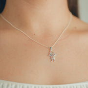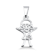 PINGENTE DE PRATA MENINA COM VESTIDO DETALHE FLOR COM ZIRCÔNIA
