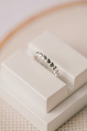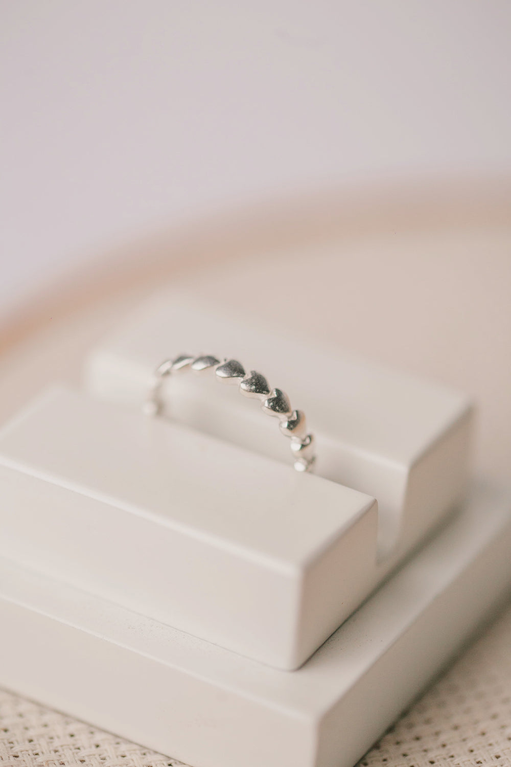 ANEL DE PRATA ALIANÇA COM CORAÇÕES