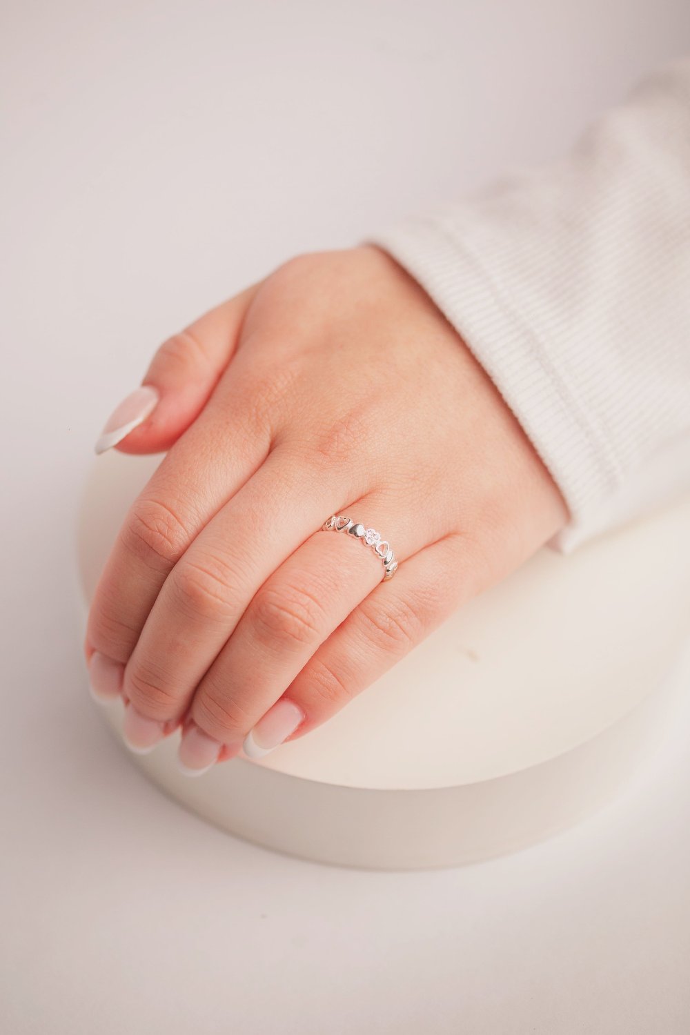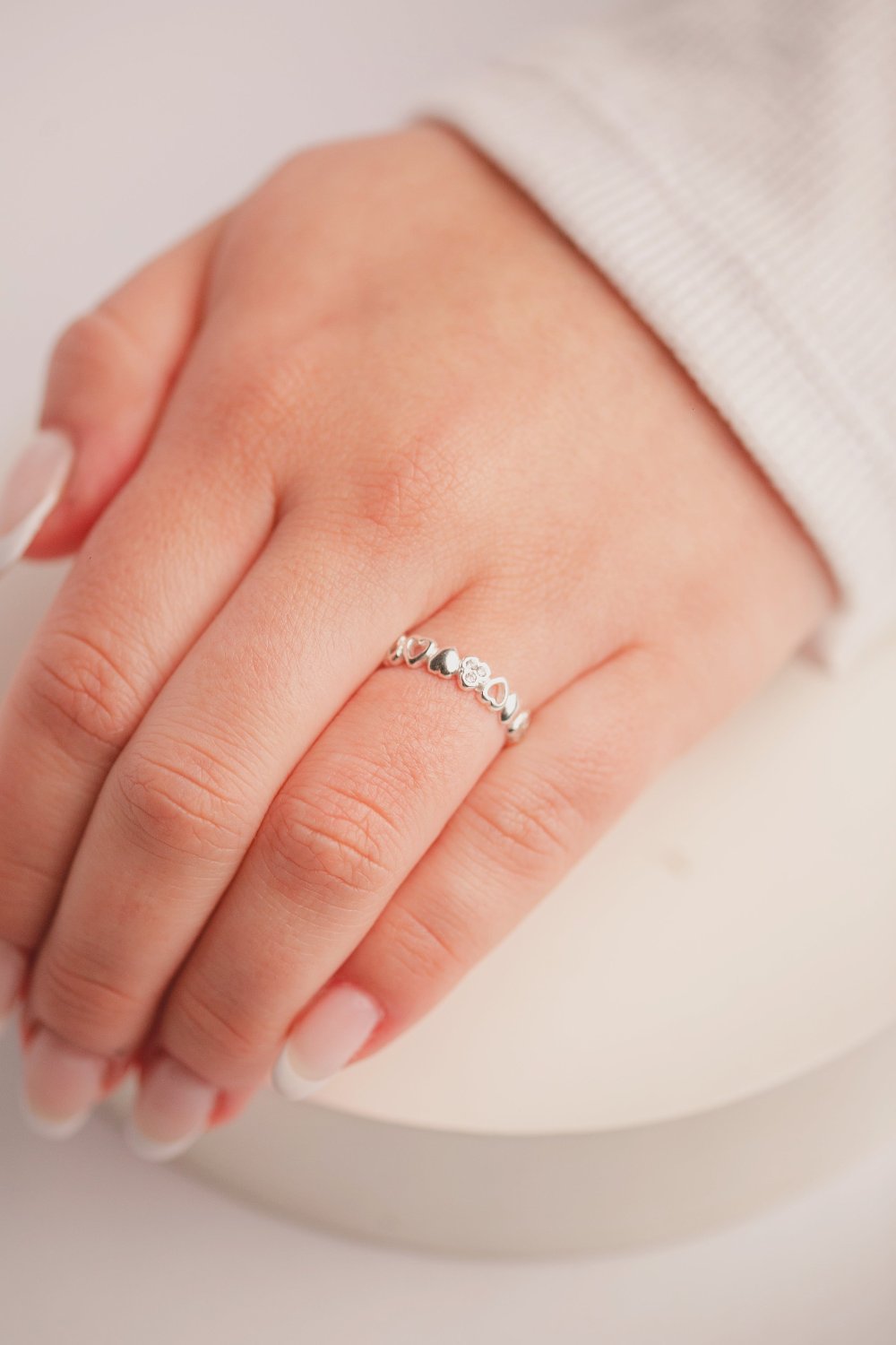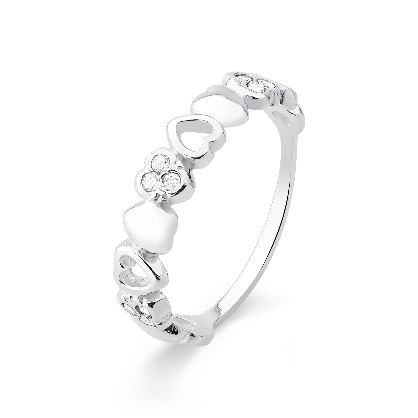 ANEL DE PRATA CORAÇÕES COM DETALHES EM ZIRCONIA