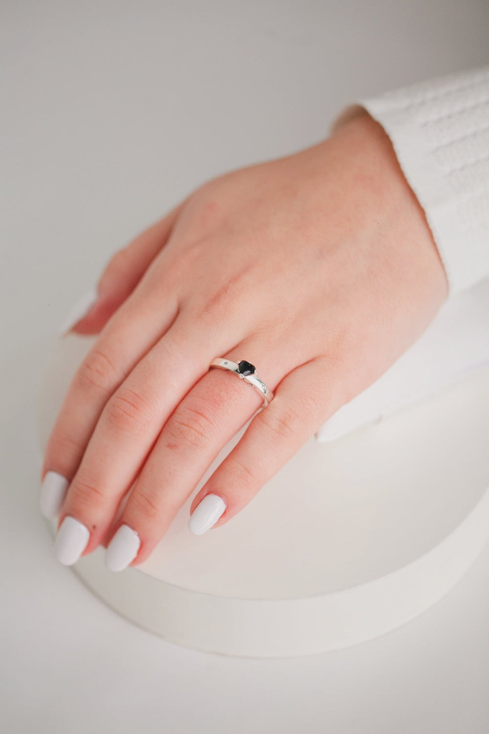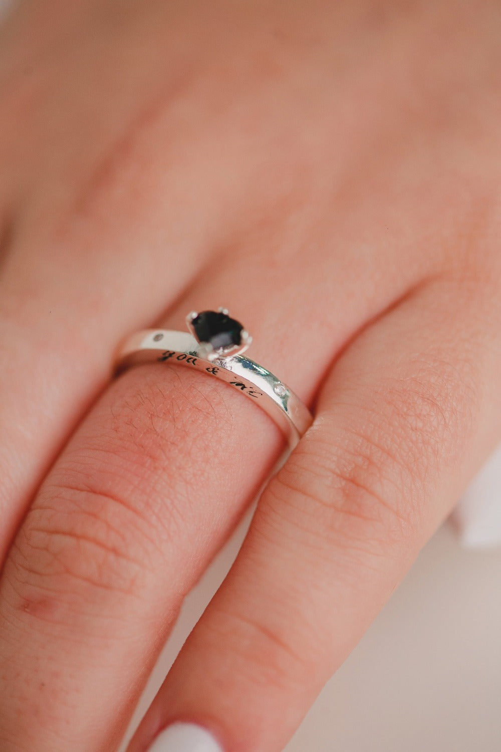 ANEL DE PRATA YOU E ME COM PEDRA PRETA