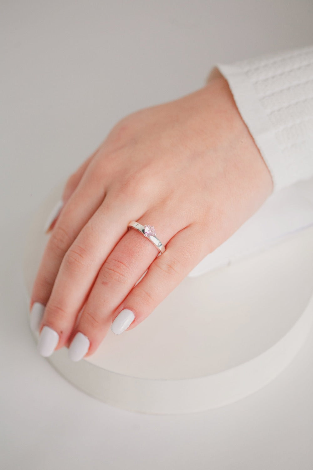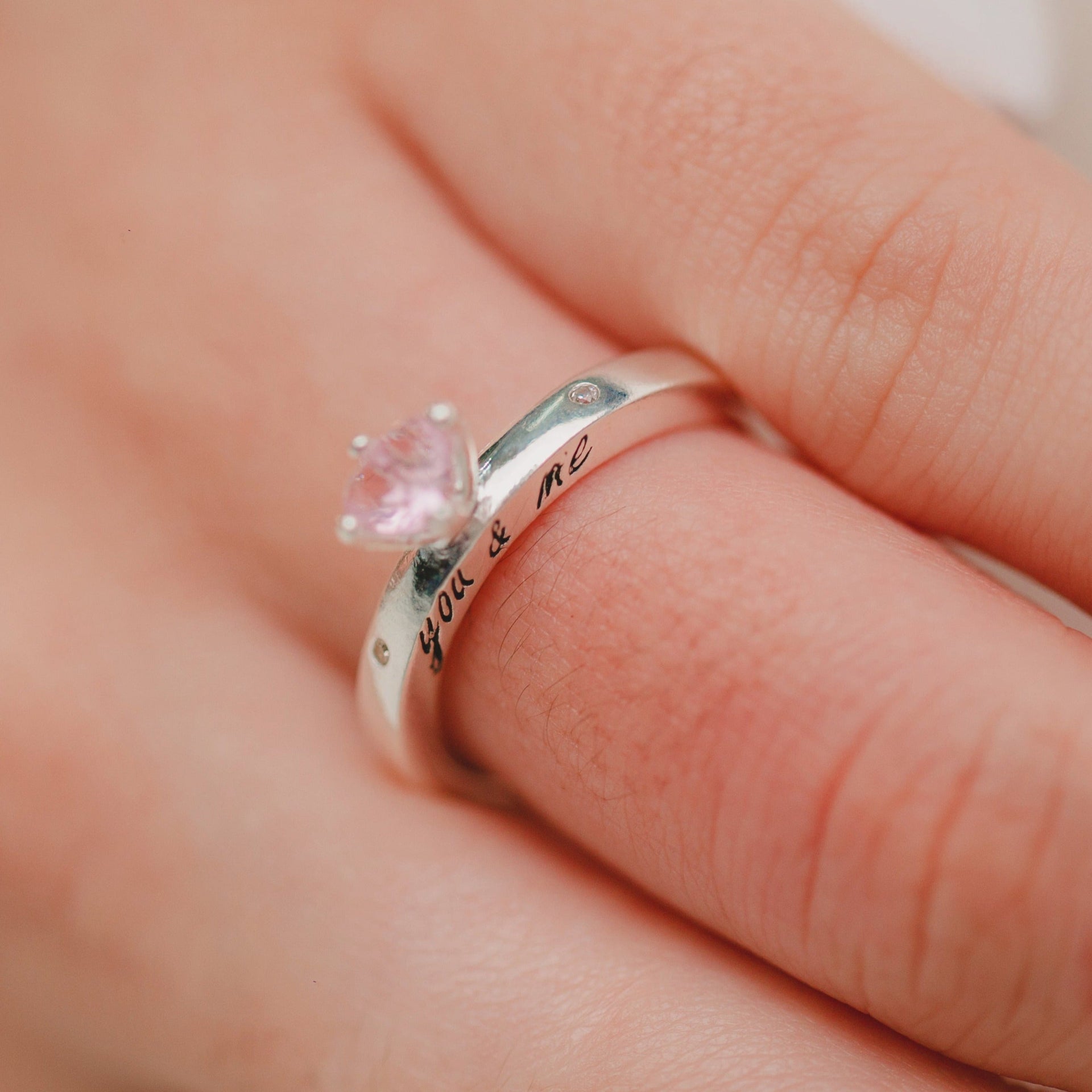 ANEL DE PRATA YOU E ME COM PEDRA ROSA
