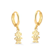 Brinco Argola com Menina Folheado a Ouro 18k.