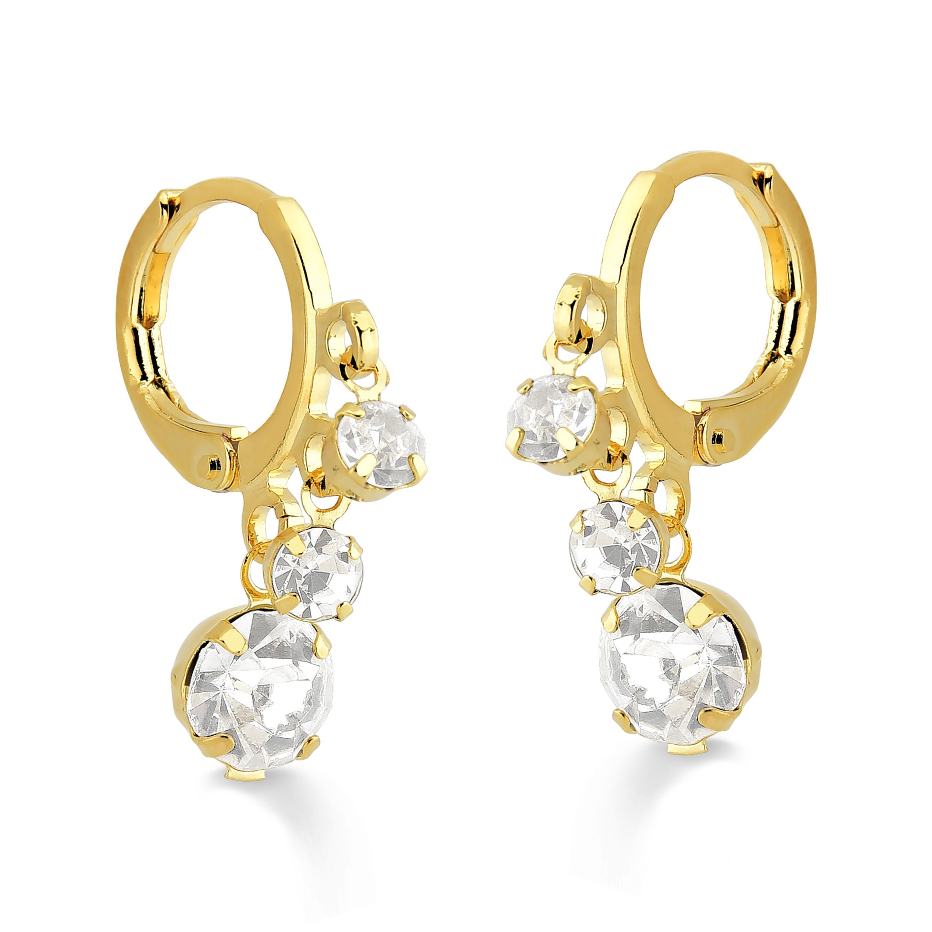 BRINCO ARGOLA COM PÊNDULOS EM ZIRCÔNIA FOLHEADO A OURO 18K