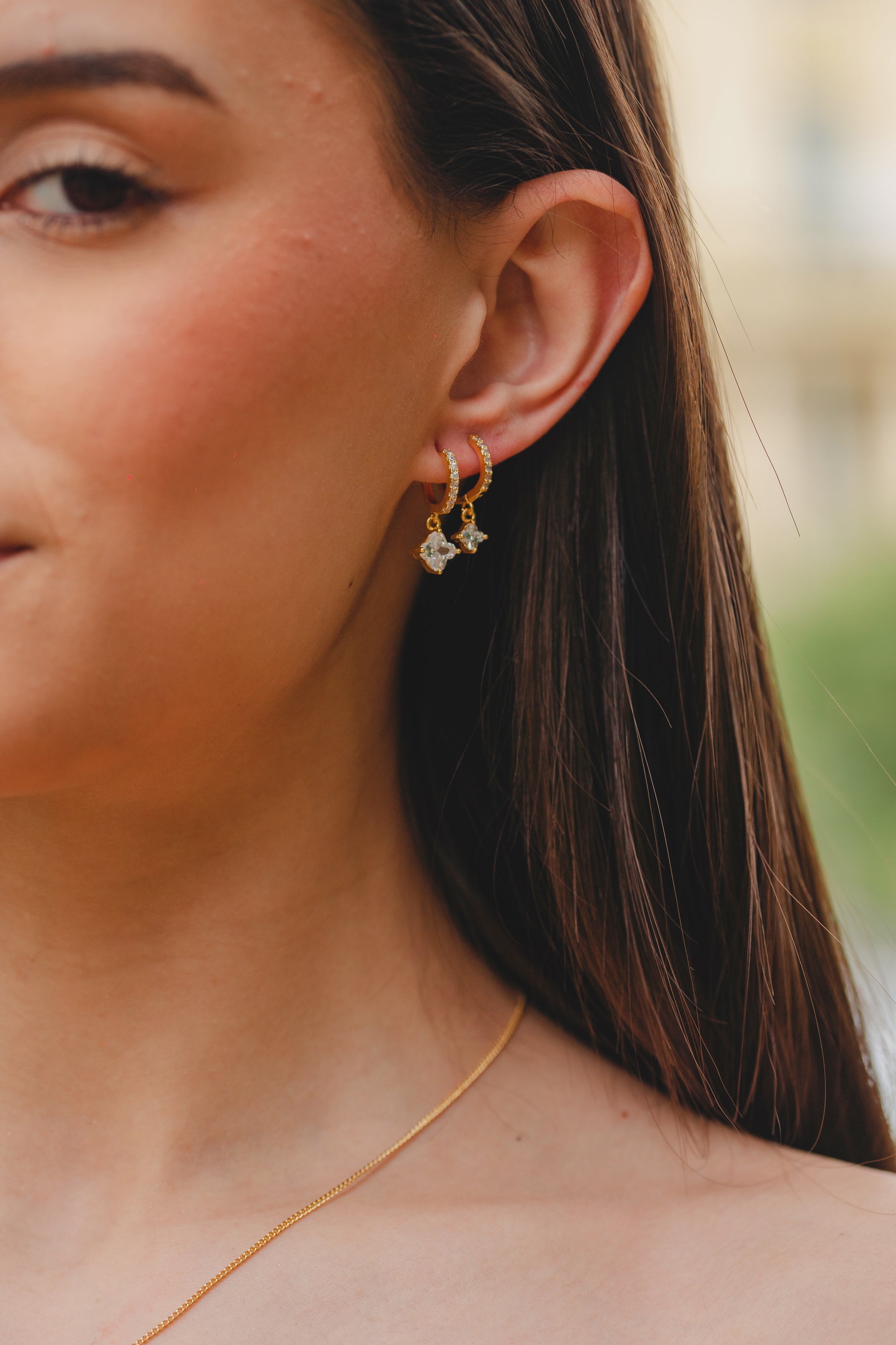 BRINCO ARGOLA CRAVEJADA COM PINGENTE EM ZIRCÔNIA FOLHEADO A OURO 18K