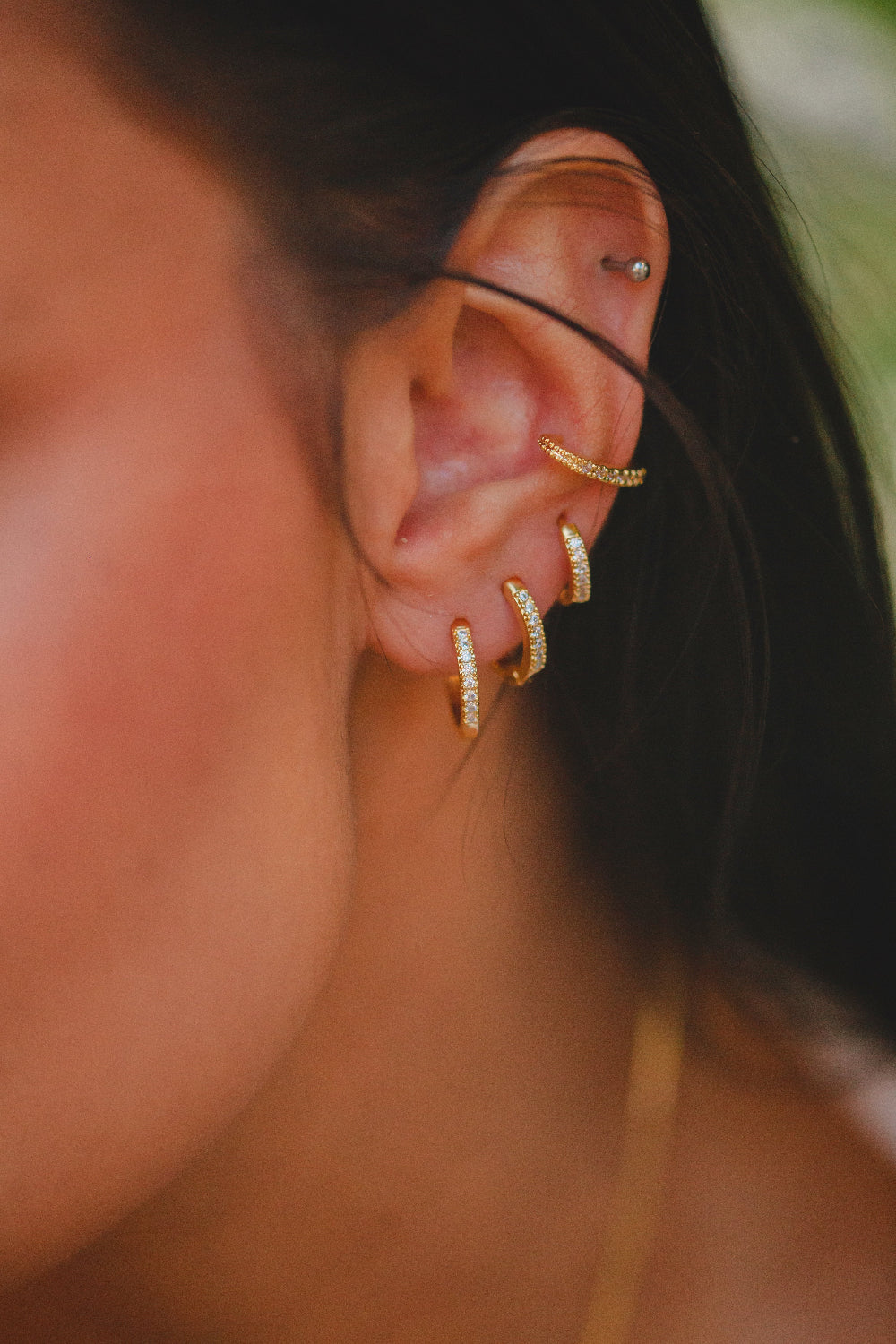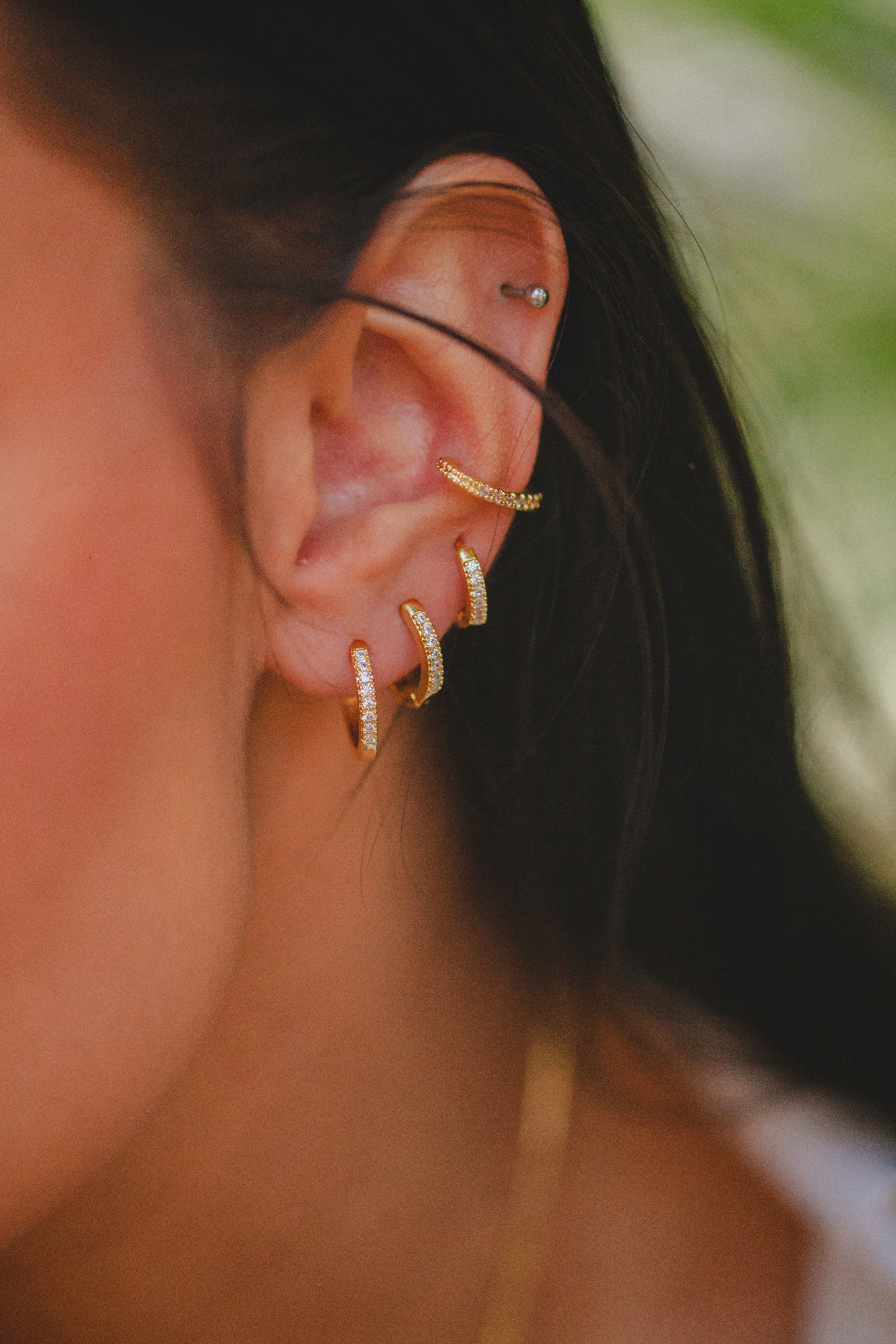 A argola cravejada é a escolha perfeita para iluminar seu rosto e valorizar qualquer produção.