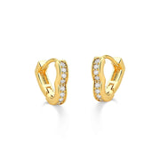 Brinco de argola de coração pequeno com zircônias cristais folheado a ouro 18k.