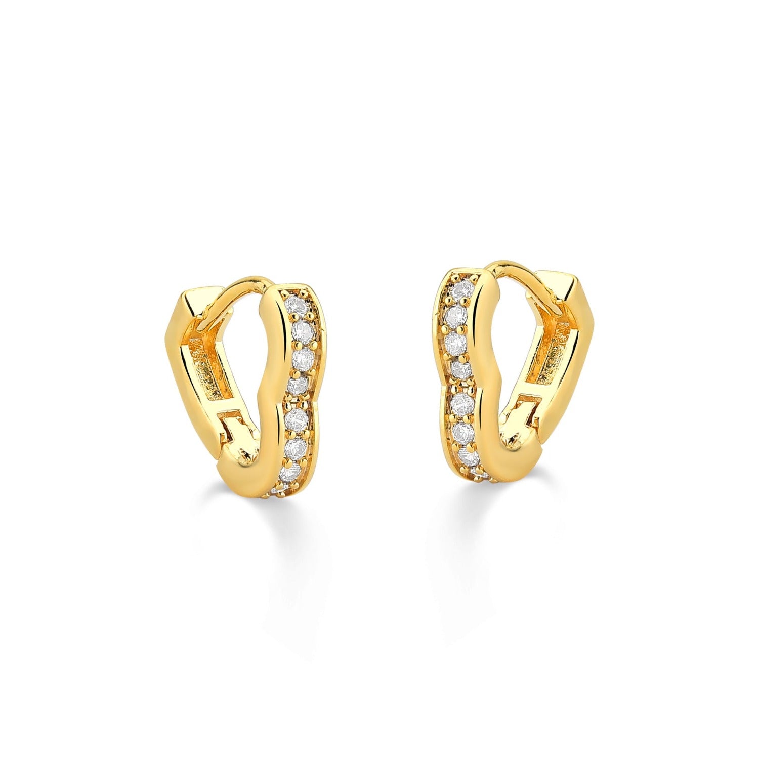 BRINCO DE ARGOLA DE CORAÇÃO PEQUENO COM ZIRCONIAS CRISTAIS FOLHEADO A OURO 18K