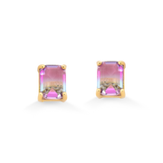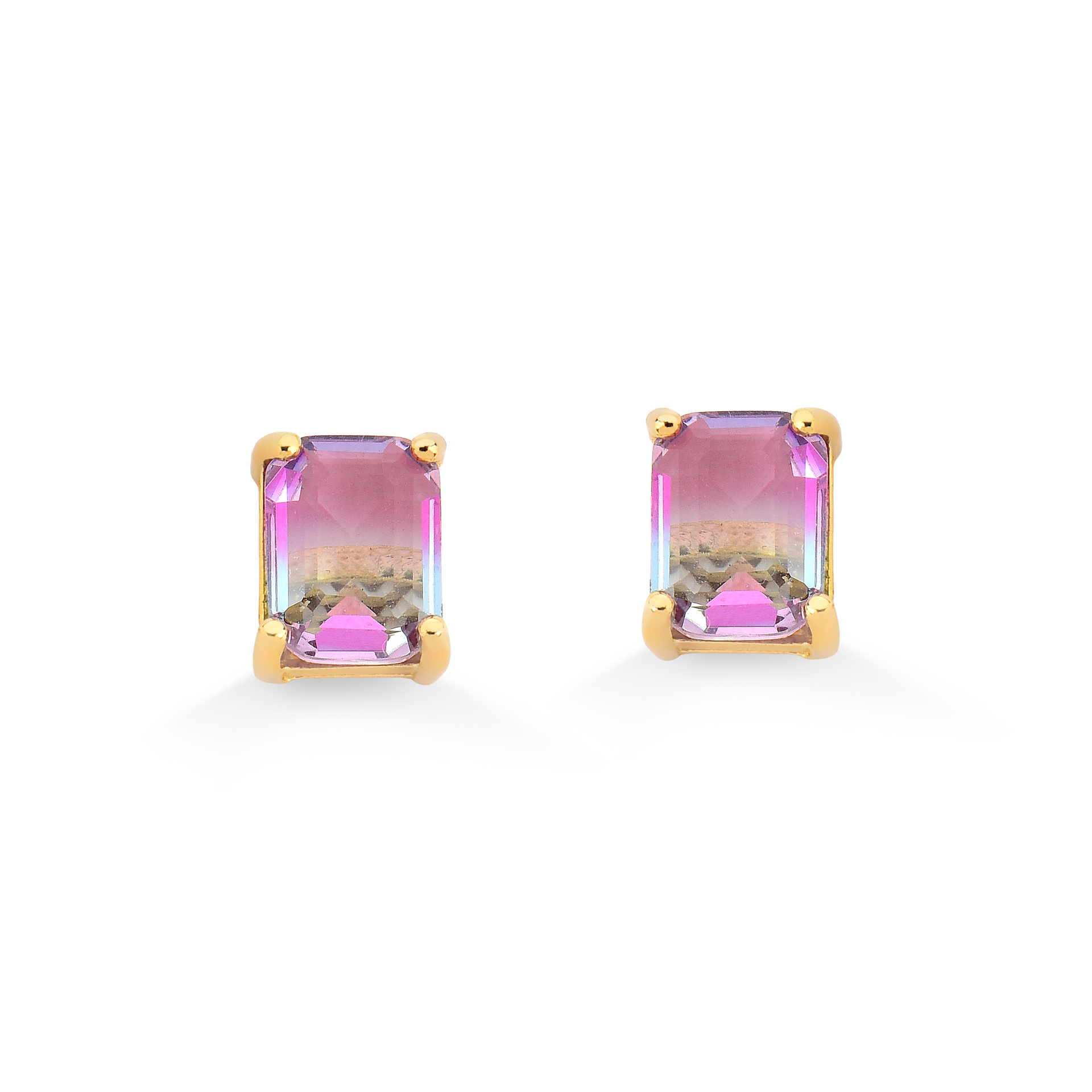 BRINCO DE PEDRA MULTICOLOR ROSA E LILAS FOLHEADO A OURO 18K