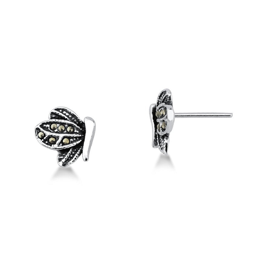 BRINCO DE PRATA ENVELHECIDA BORBOLETA DE LADO COM MARCASSITAS