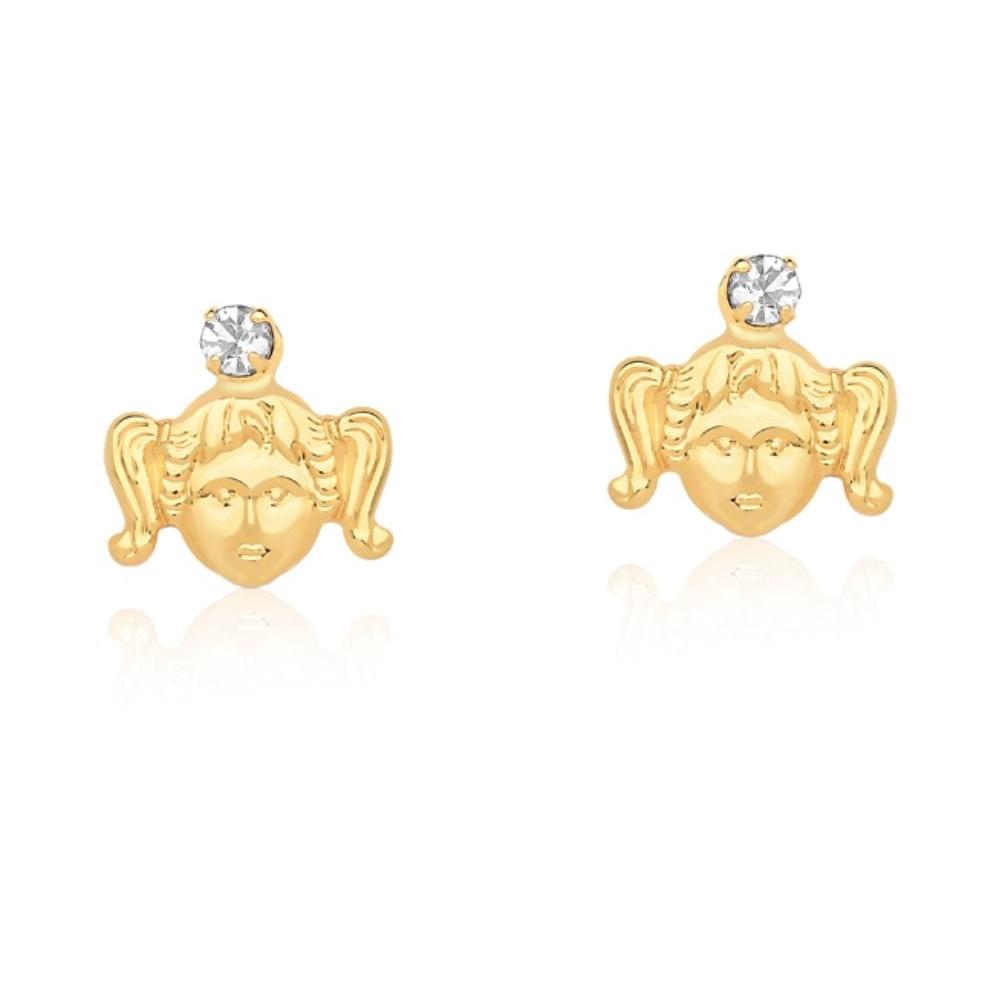 BRINCO MINI MENINA COM ZIRCÔNIA FOLHEADO A OURO 18K