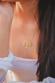 COLAR ÁRVORE DA VIDA COM ZIRCONIA COLORIDA FOLHEADO A OURO 18K