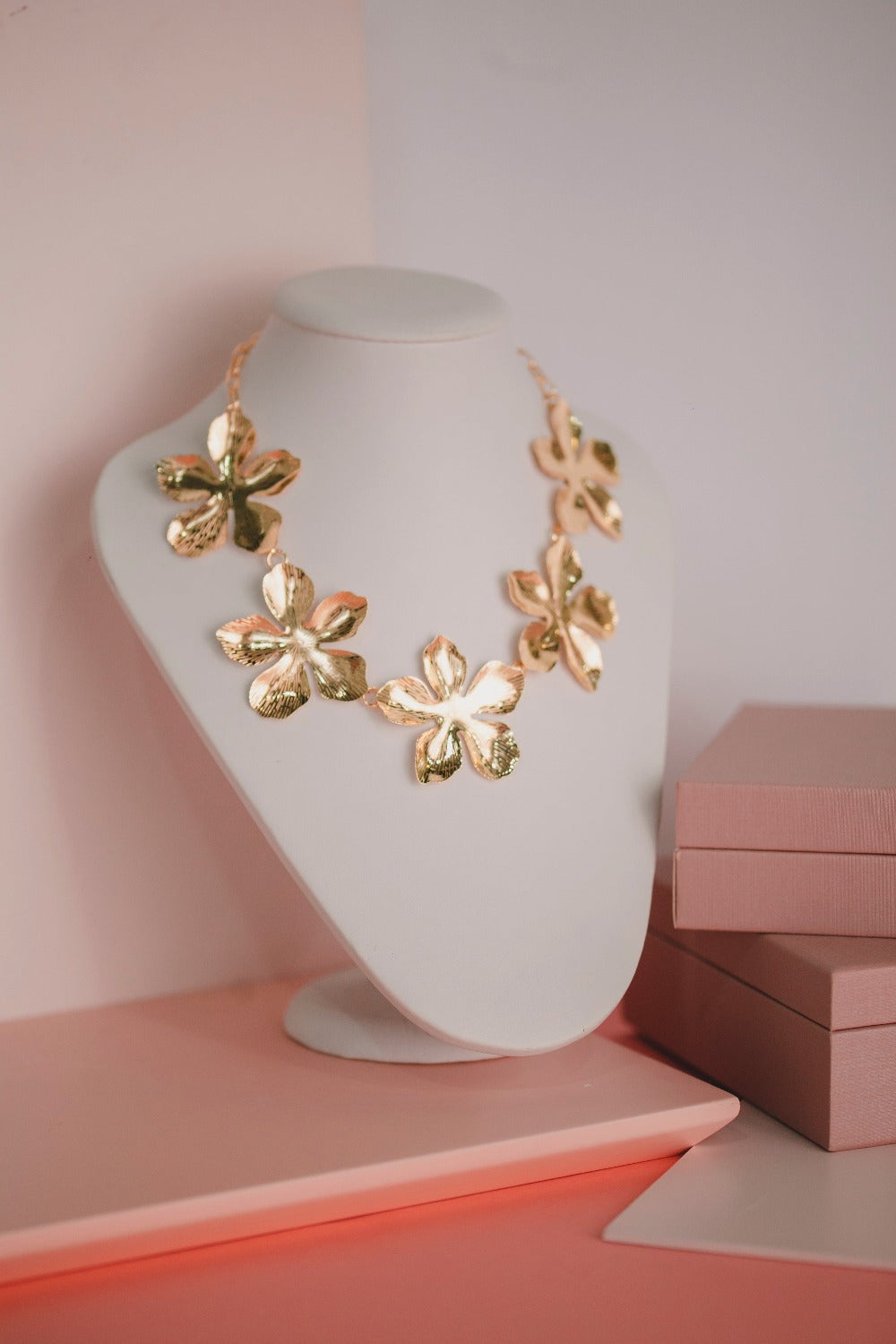 O  colar bijuteria flor margarida  com detalhes, junta praticidade e beleza em um só produto.