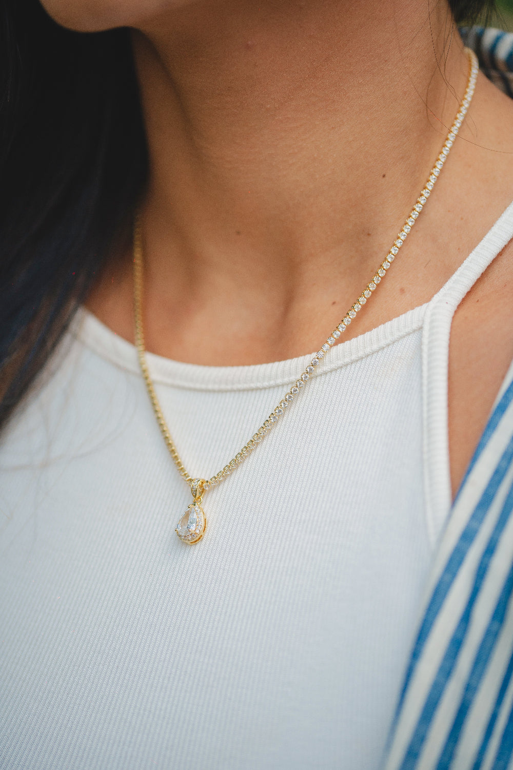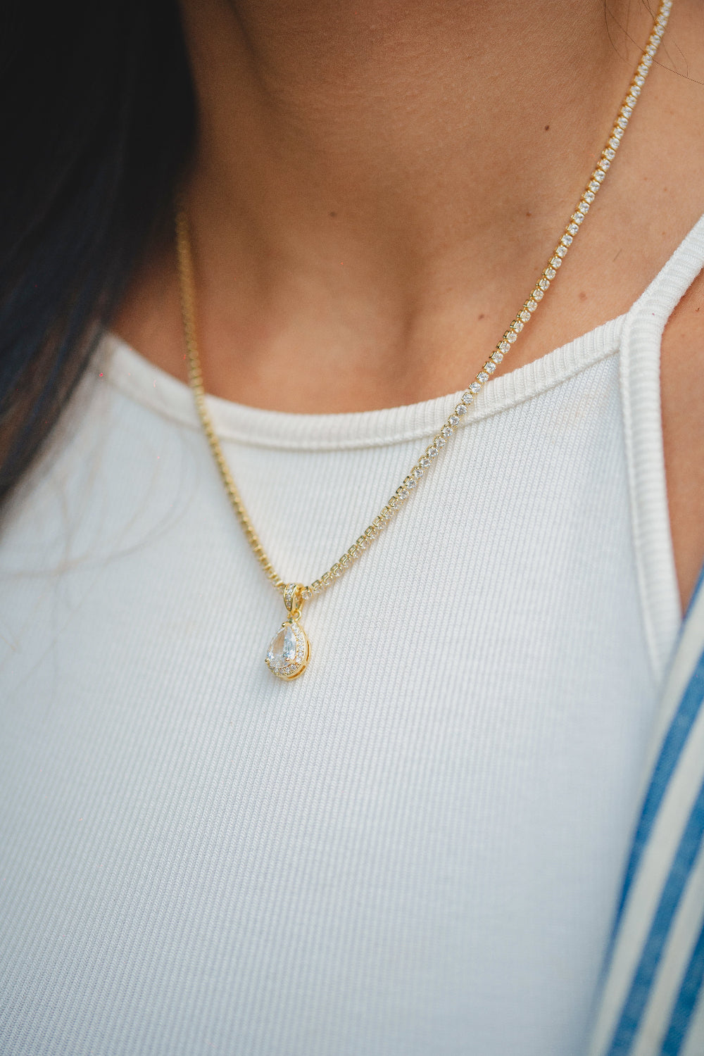 RIVIEIRA COM PINGENTE CRAVEJADO FOLHEADO A OURO 18K