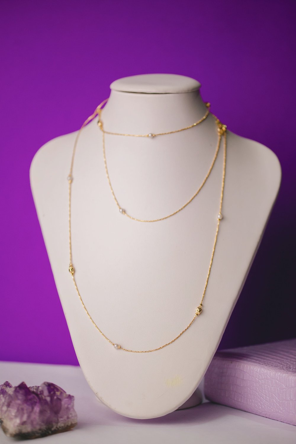 COLAR COMPRIDO COM PÉROLA FOLHEADO A OURO 18K