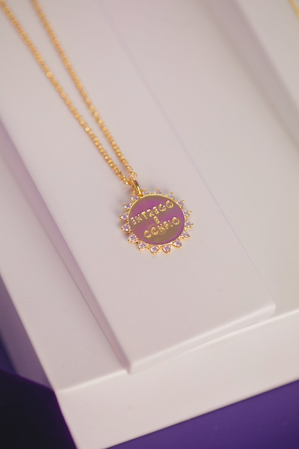 Colar Entrego e Confio com Pingente em Zircônia Folheado a Ouro 18k.