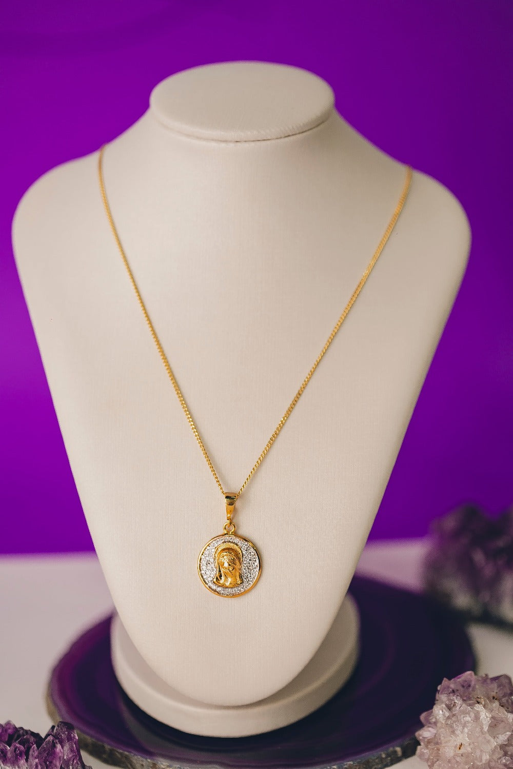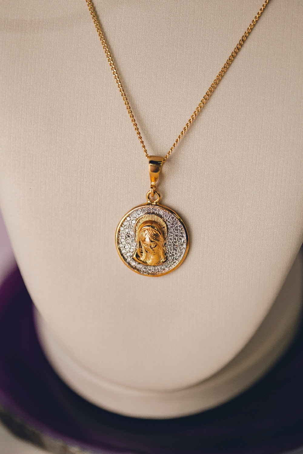 COLAR SANTA MARIA MÃE DE DEUS FOLHEADO A OURO 18K