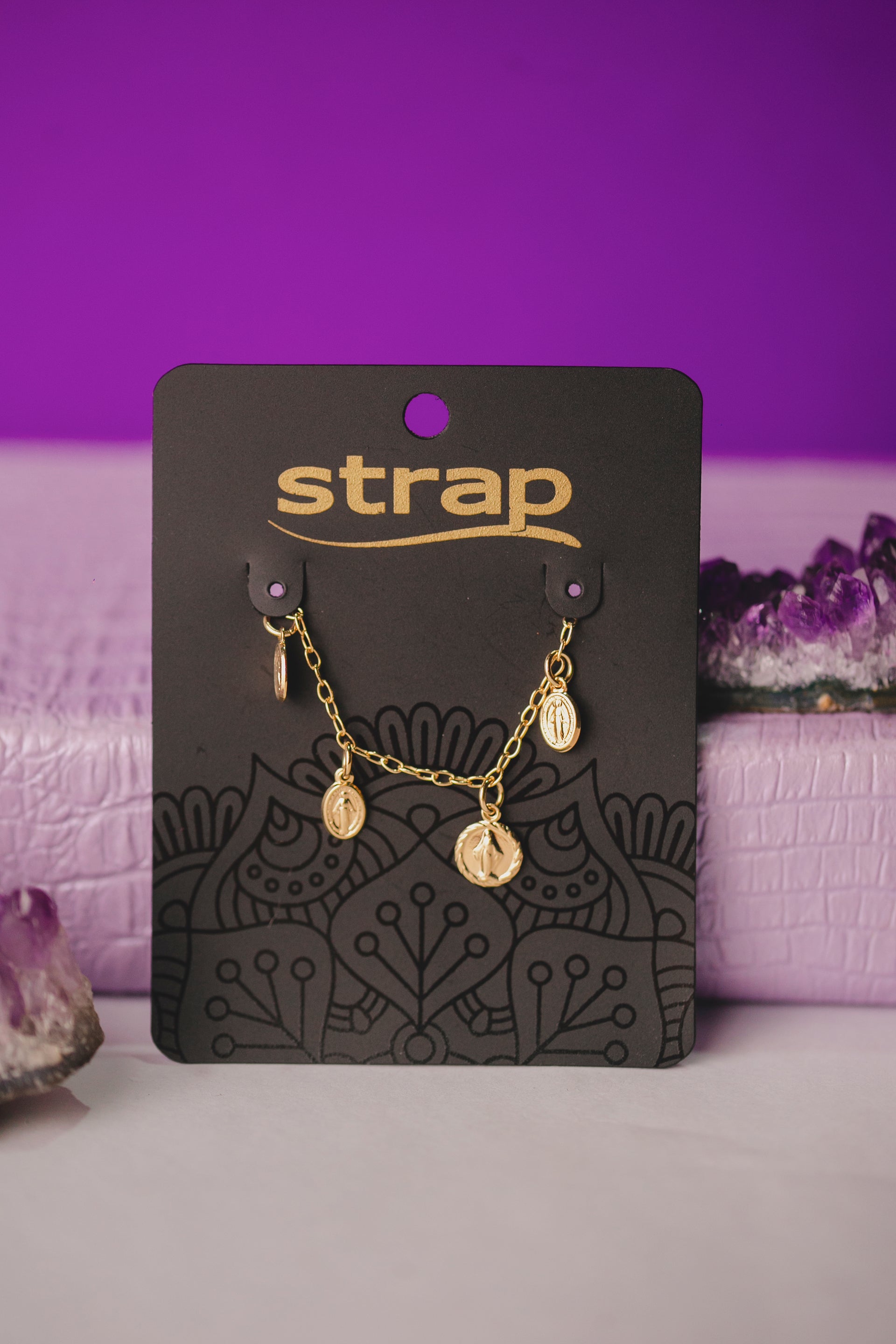 PULSEIRA NOSSA SENHORA MEDALHAS FOLHEADO A OURO 18K